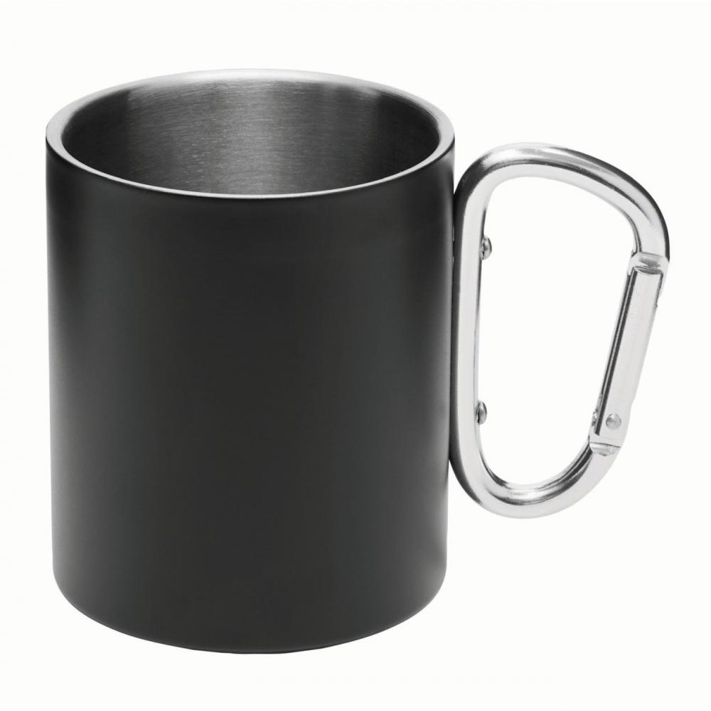 Нержавеющая стальная кружка DEEP VALLEY, двойные стенки: окрашена снаружи, с серебристым карабином (этот карабин НЕ подходит для скалолазания), вместимость около 300 мл.