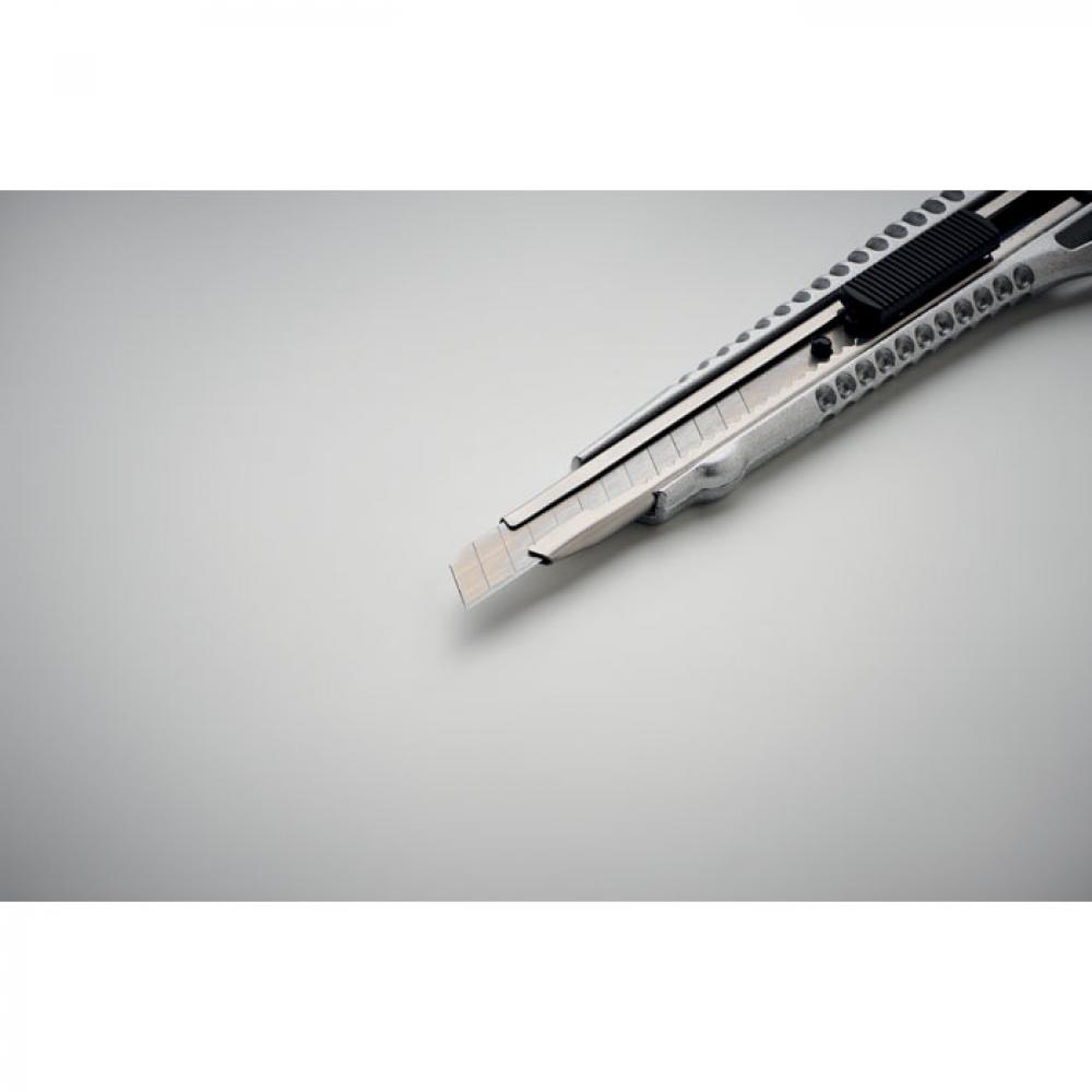 Канцелярский нож из алюминия с 13 лезвиями из углеродистой стали.