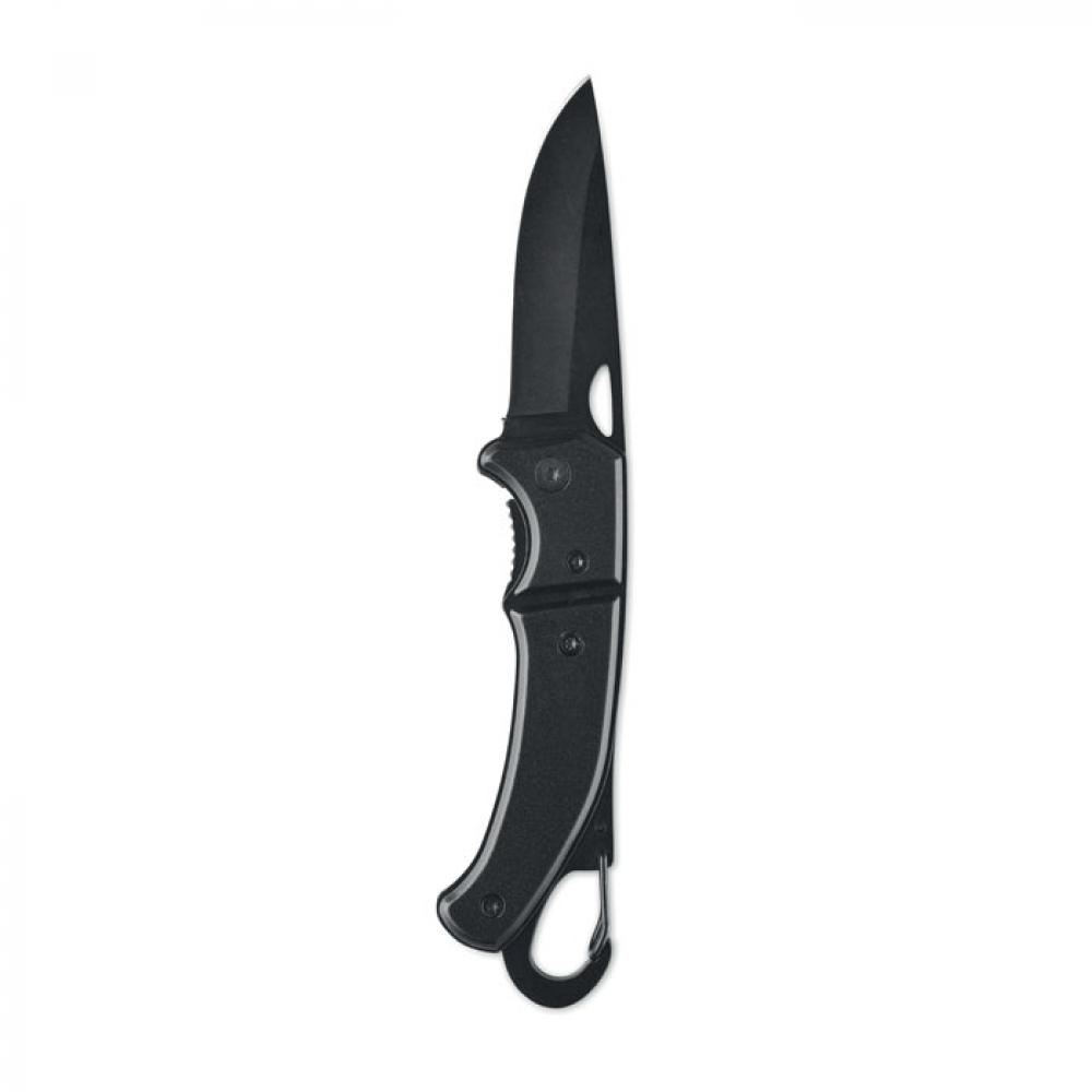 Алюминиевый складной нож с карабином. Лезвие из нержавеющей стали.