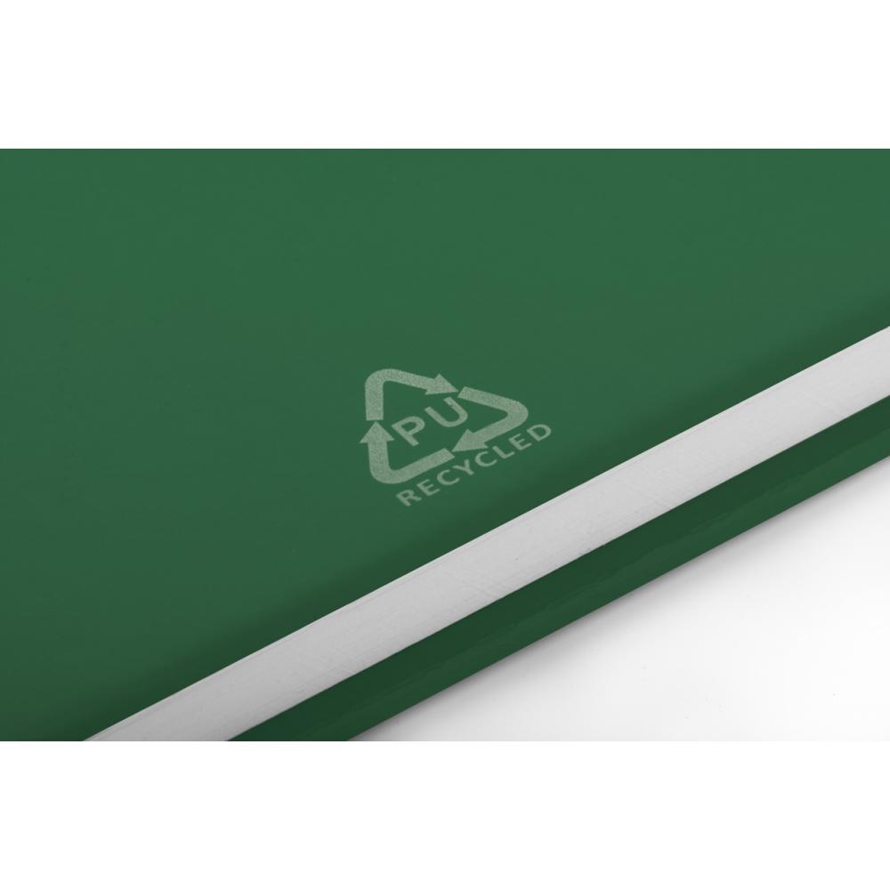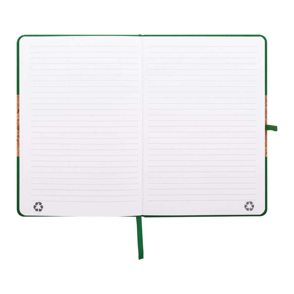 Блокнот с обложкой из натурального пробкового материала и переработанной кожи PU с закладкой, резинкой и держателем для ручки в тон. Внутри 80 линованных листов из переработанной бумаги. Размер A5.