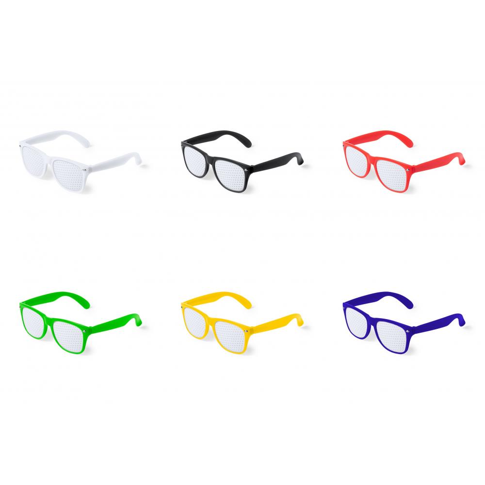 Особенности Очки оригинального дизайна, специально разработанные для полноцветной цифровой печати. С оправой веселых цветов и перфорированными линзами.