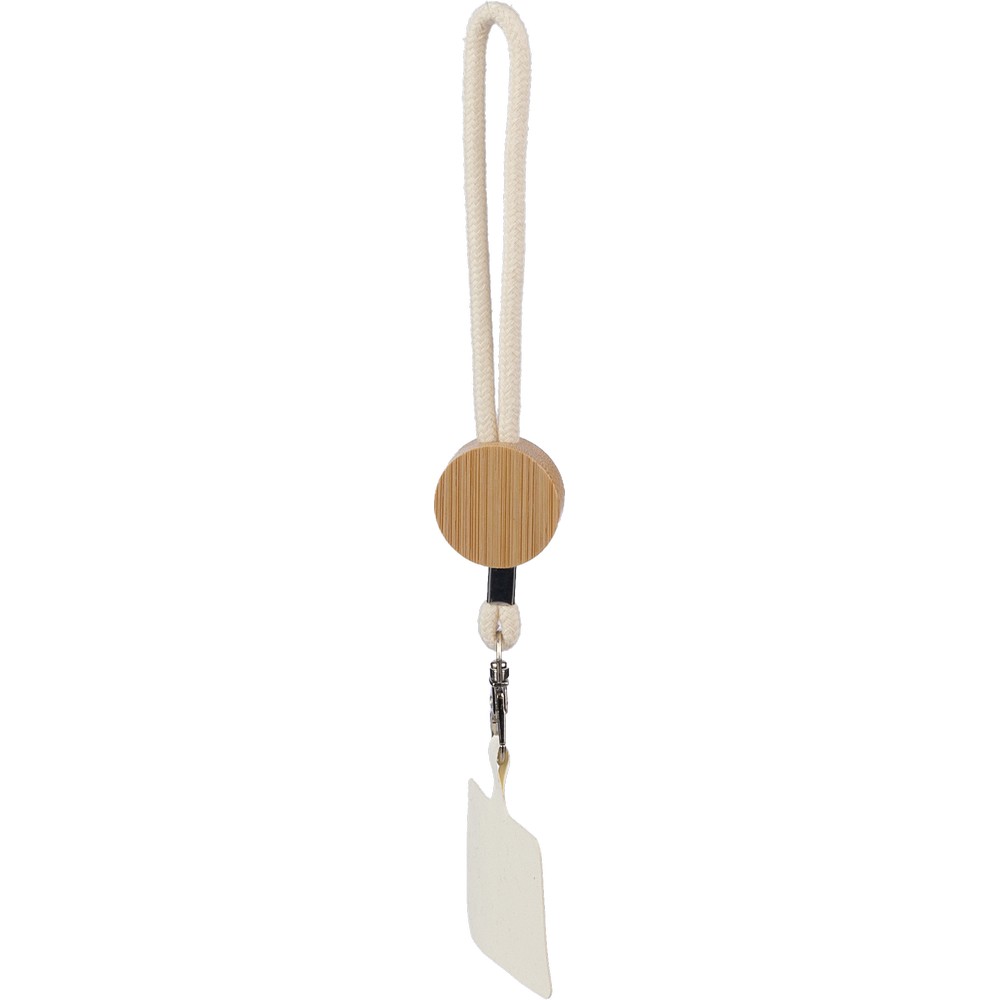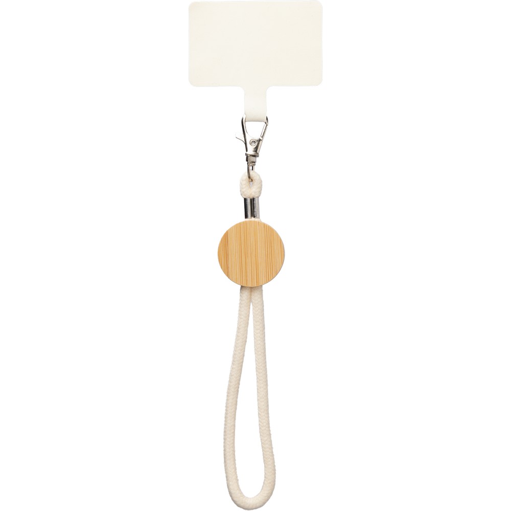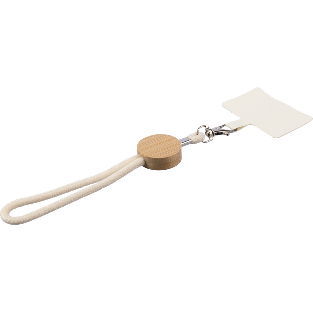 Телефонный ремешок с металлическим карабином для крепления, с круглым элементом из бамбука, изделие из хлопка.