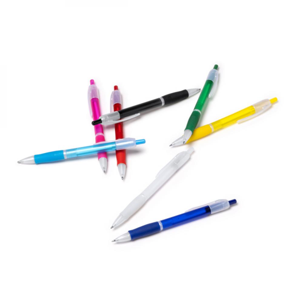 Нажимная шариковая ручка в прозрачной отделке с мягким соответствующим грипом. Синяя чернила.