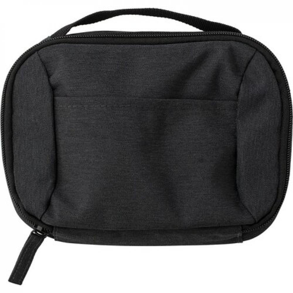 Органайзер для путешествий с отделениями для документов, наушников, портативного зарядного устройства, ручки и кабелей.