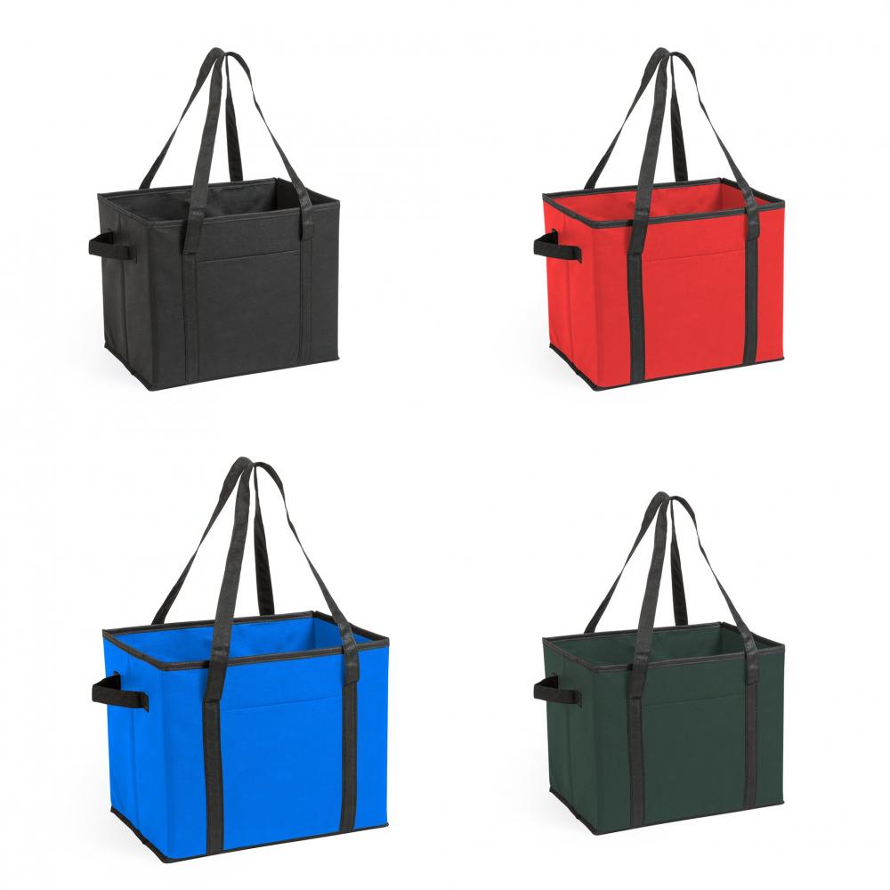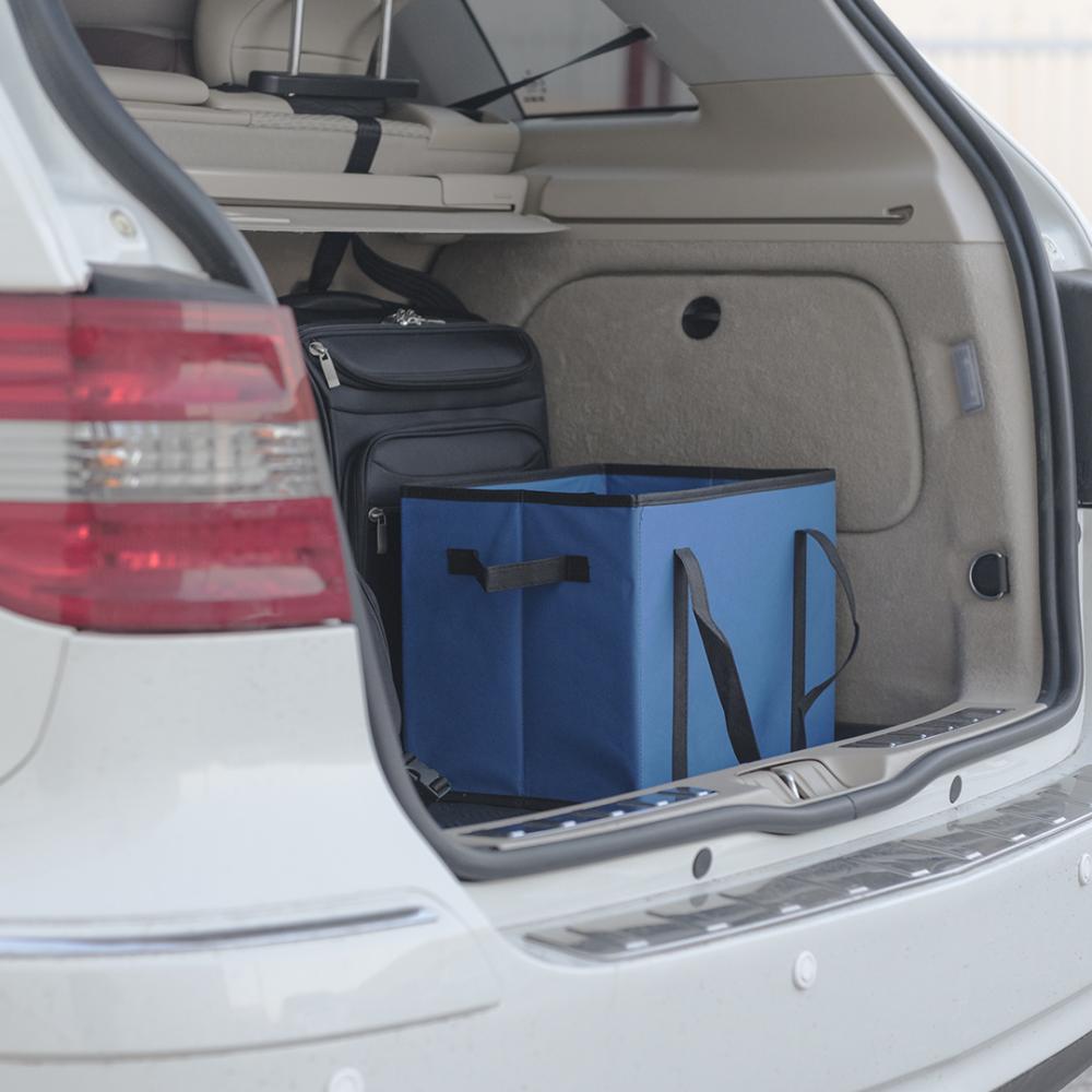 Особенности Складной органайзер для багажника автомобиля из прочного, ярко окрашенного нетканого материала. С усиленными ручками для переноски, боковой ручкой, передним карманом и жестким основанием для надежной посадки.