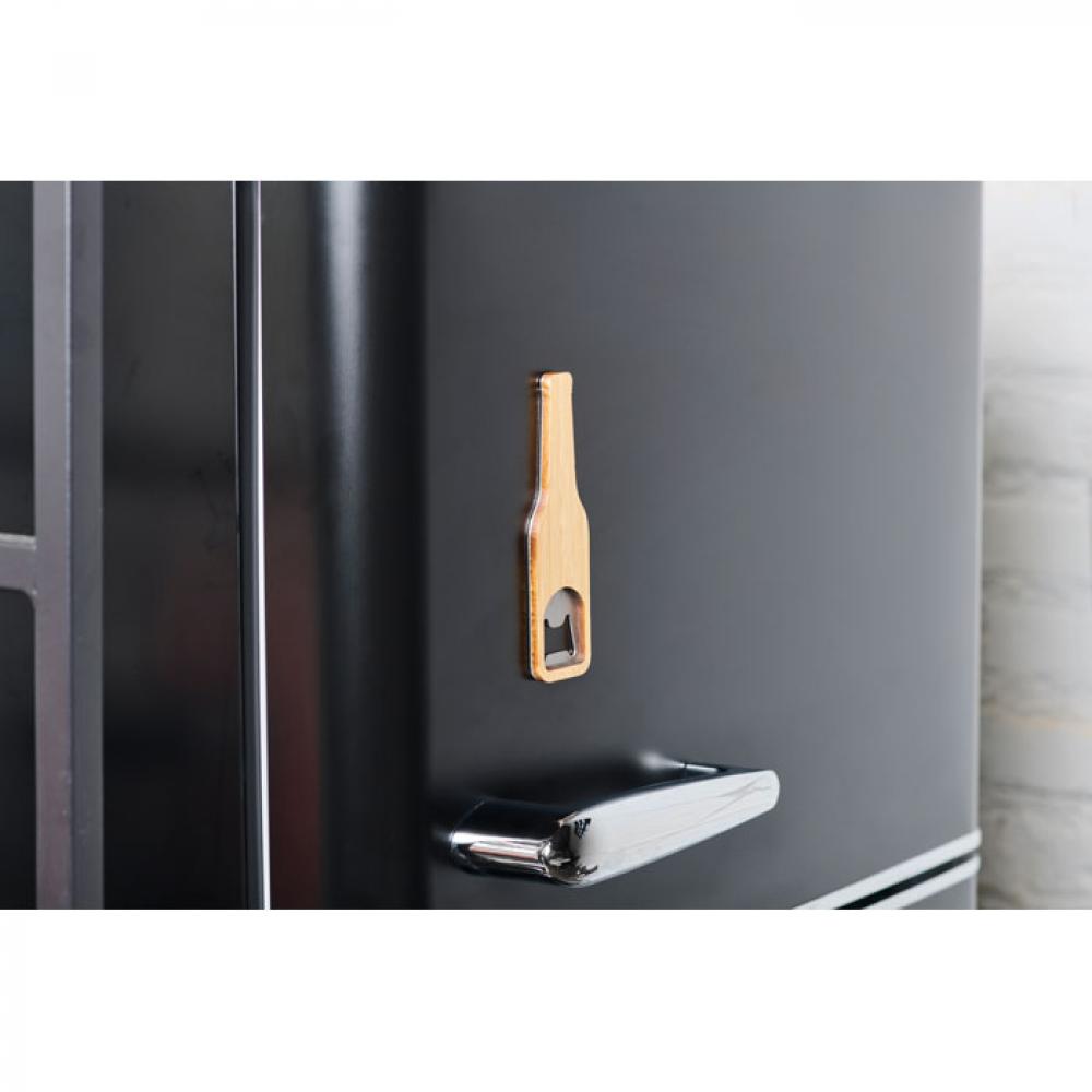 Магнитная открывалка для бутылок из нержавеющей стали с бамбуковой отделкой.