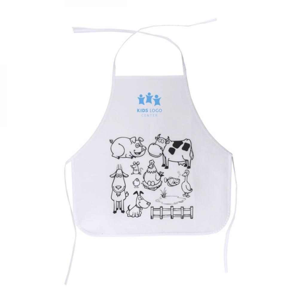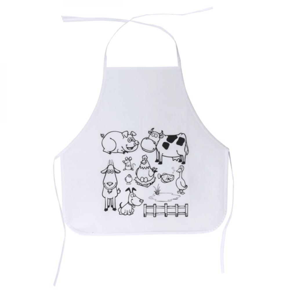 Детский нетканый фартук с оформлением для раскрашивания. Включает 5 восковых карандашей различных цветов. Один размер.