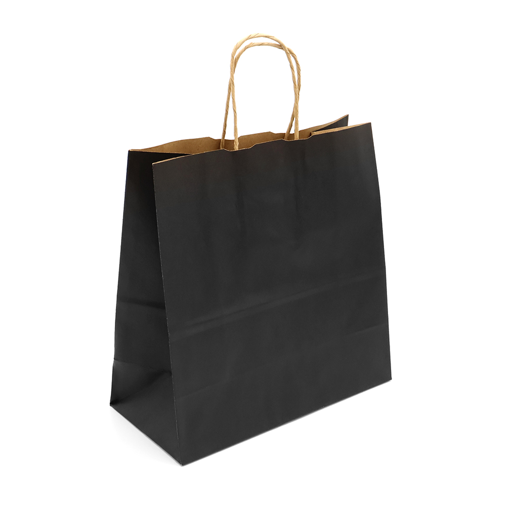 Бумажный пакет плотностью 110 г/м², с усиленными короткими ручками витой формы.