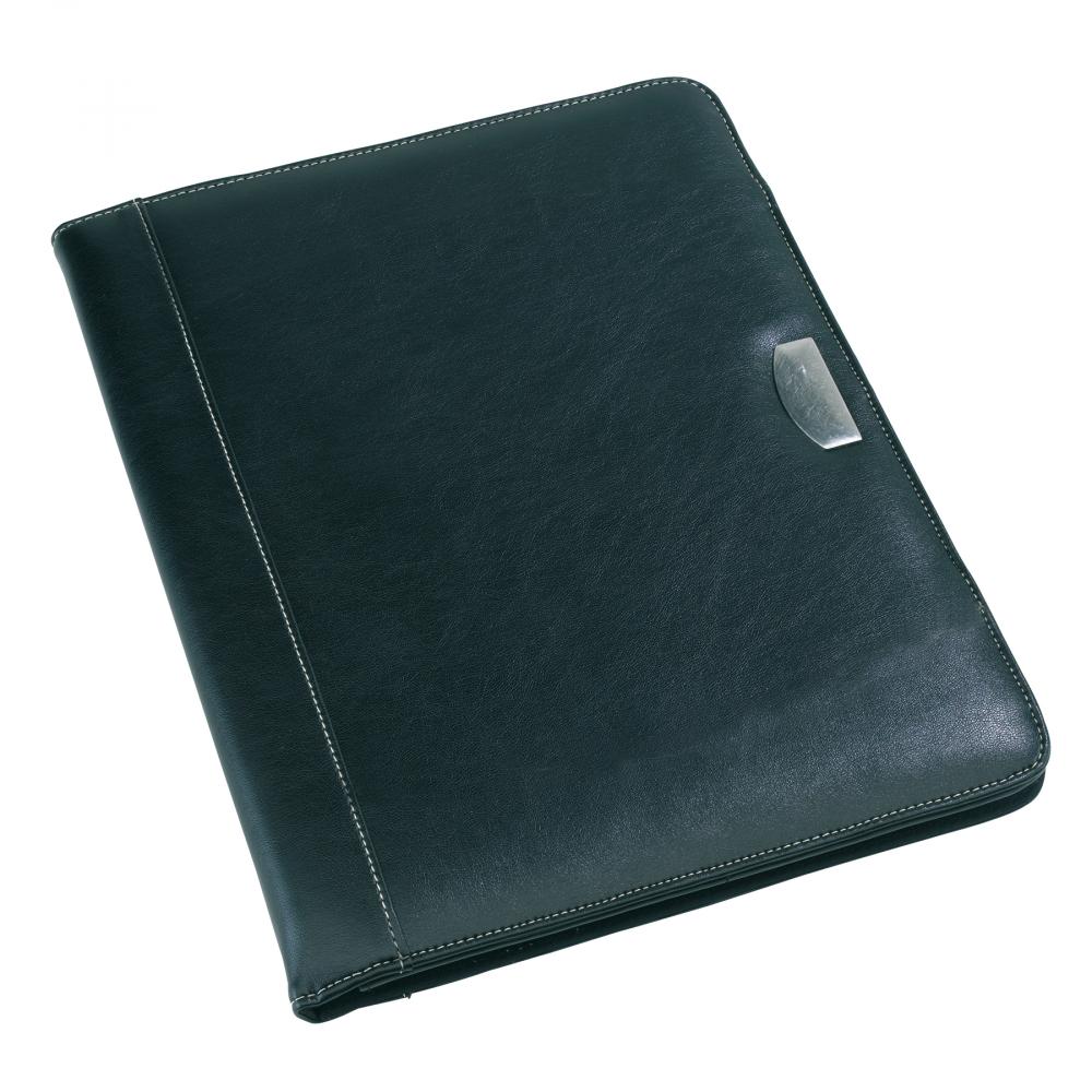 Портфель NOBLESSE в формате DIN A4 с блокнотом, ремешком для ручки, множеством накладных карманов, белой декоративной строчкой по краю, из высококачественной синтетической кожи с металлической пластиной для вашего логотипа