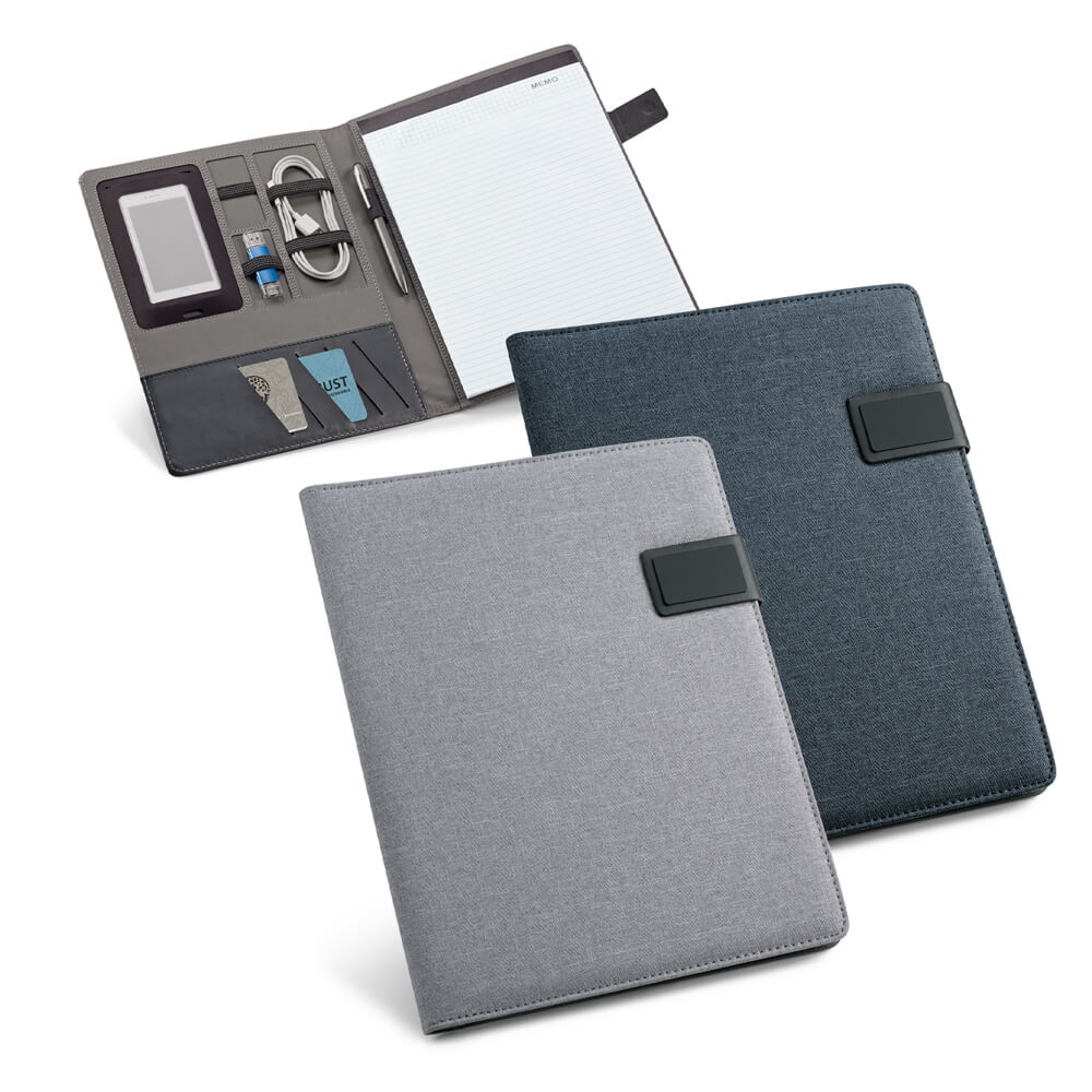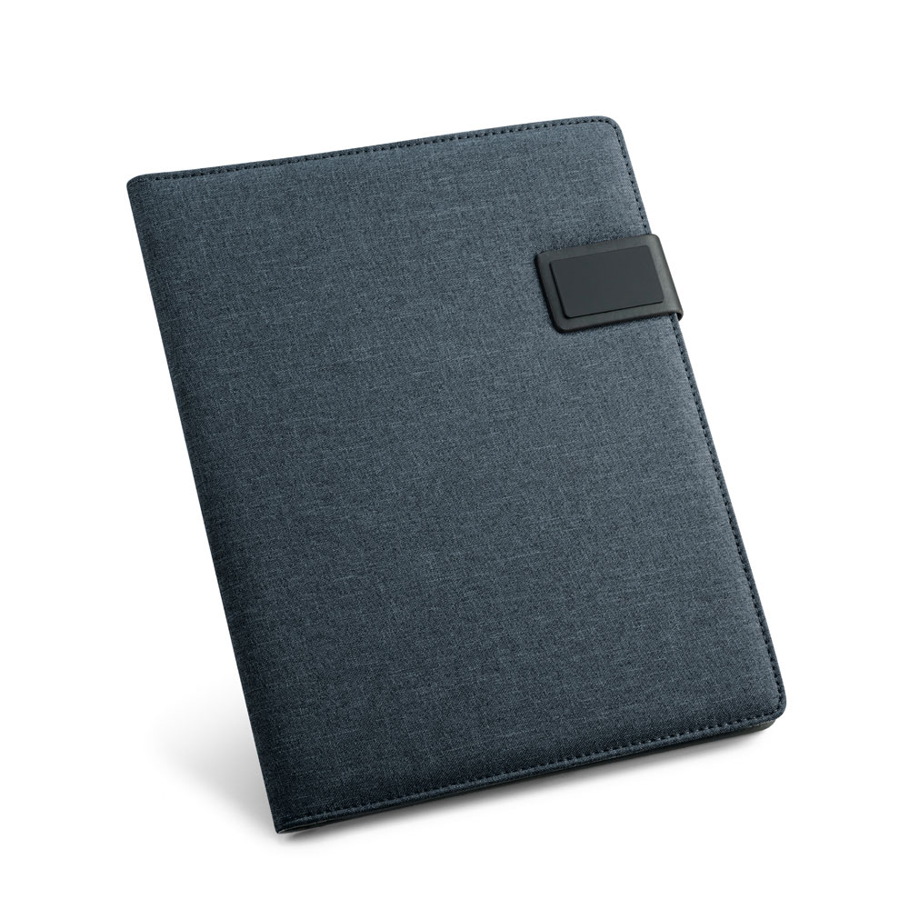 Папка формата A4, с покрытием из материала имитирующего лён и искусственной кожи, с магнитной застежкой. Данная папка поставляется с блокнотом из 20 листов в линейку внутри, держателем для ручки (не включена) и прочими отделениями (аксессуары не включены). 233 x 310 x 18 мм | Пластина: 50 x 30 мм
