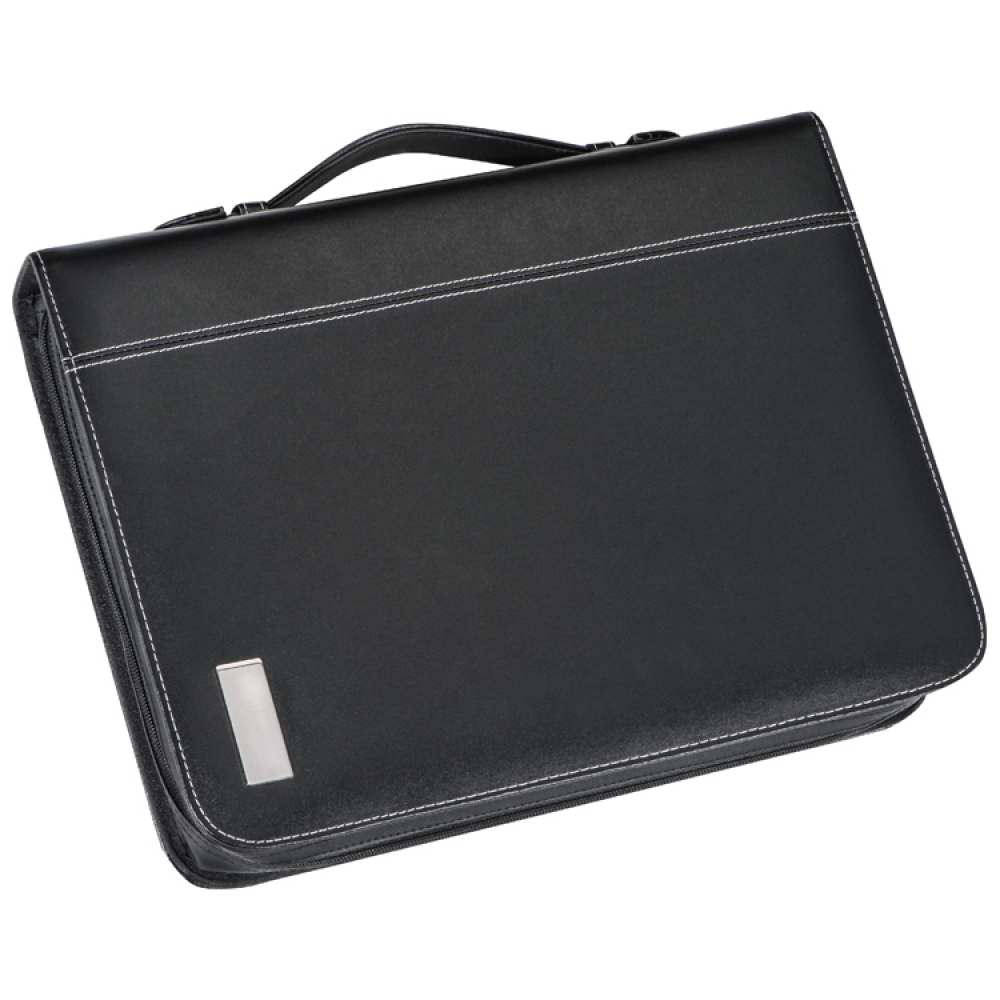 Папка для конференций в формате А4, изготовлена из высококачественной кожи. Имеет сегрегатор, практичные карманы для визитных карточек, телефона и место для ручек, а также блокнот в линию с небольшим календарем. Логотип можно поместить на металлической пластинке.