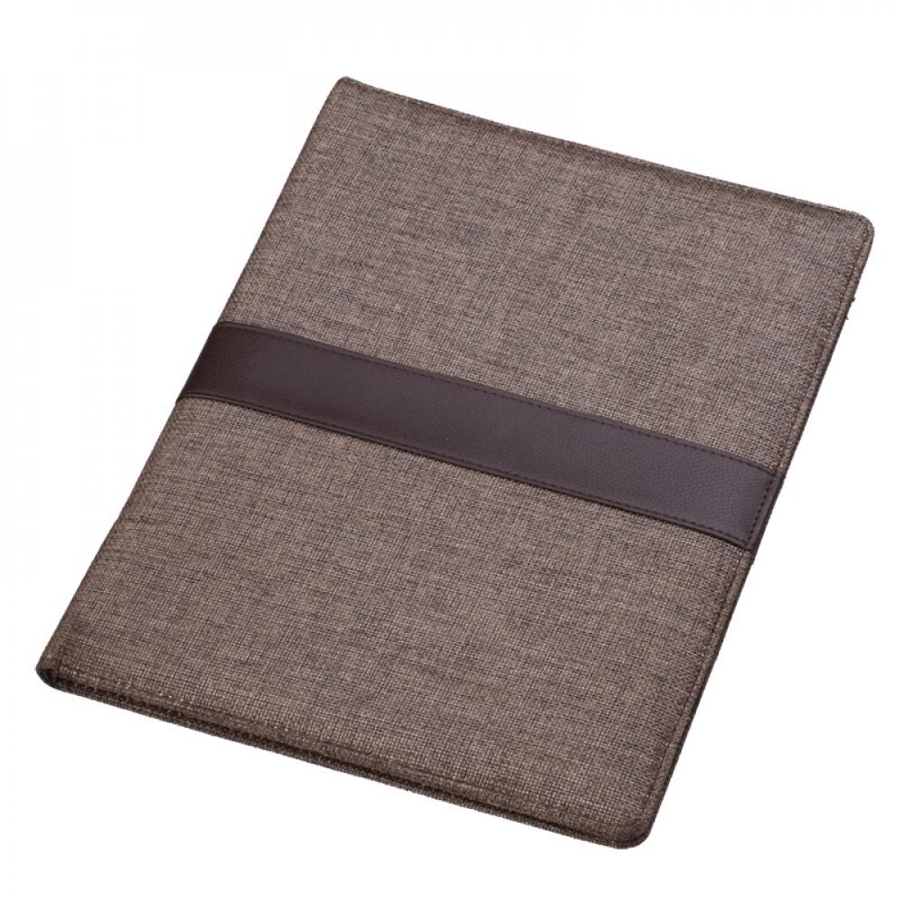 Папка для конференций формата А4 в льняной обложке. Поставляется с блокнотом из переработанной бумаги на 20 страниц. Карман для документов формата A4, петля для ручки и 2 дополнительных отделения. Шариковая ручка в комплект не входит.