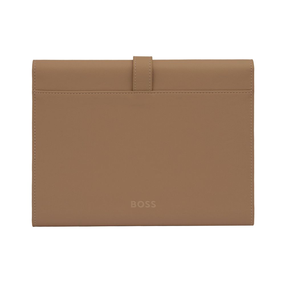 Эта папка формата A5 от BOSS сочетает в себе женственный цвет верблюжьей шерсти с роскошными золотыми акцентами. Увеличенная застежка в виде двойной буквы B с легким золотым покрытием придает изделию элегантность, а мягкая текстурированная искусственная кожа подчеркивает его утонченный стиль. Теплые оттенки верблюжьего цвета гармонично сочетаются с золотыми деталями, что делает папку идеальным дополнением к женственной ручке и брелоку Arche Double B, прекрасно подходящими для создания стильных подарочных наборов.