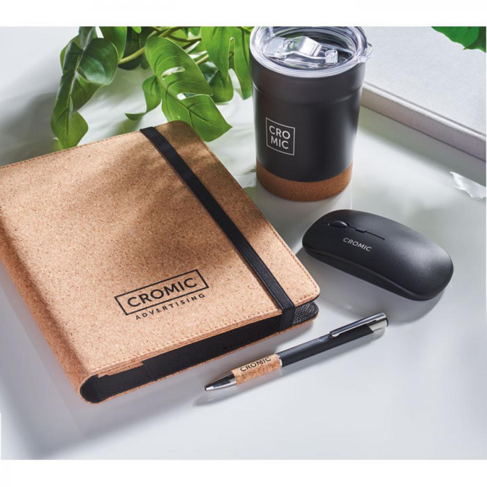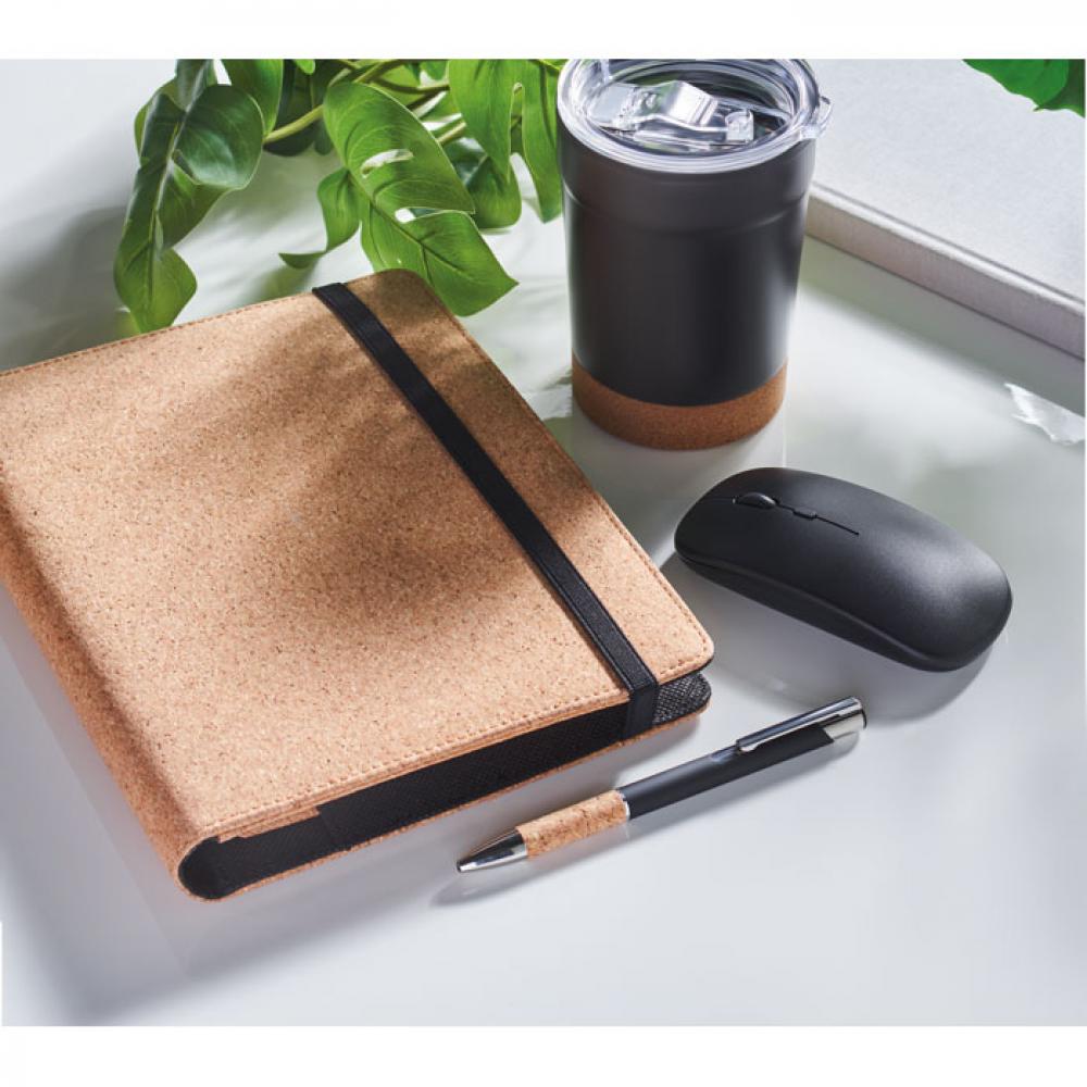 Пробковая папка формата А5: Многоразовая записная книжка формата А5 в твердой пробковой обложке. В переплете. 192 линованные страницы из переработанной бумаги (96 листов). В комплекте ручка и держатель для ручки. 2 держателя для карточек и одно большое отделение. Эластичный ремешок с застежкой.