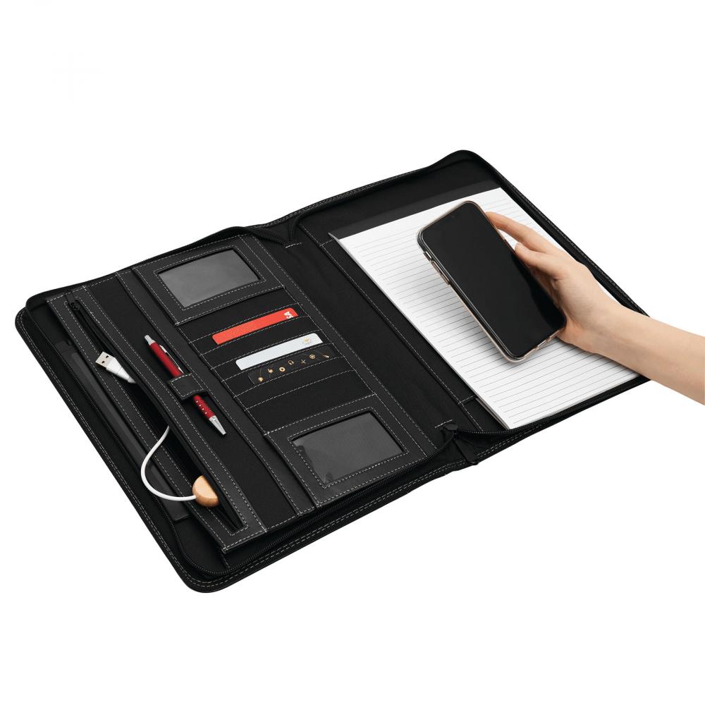 Папка BIG BOSS: в формате DIN A4, на круглой молнии, с блокнотом, различными накладными карманами и 1 накладным карманом на молнии, эластичная петля для ручки снаружи.