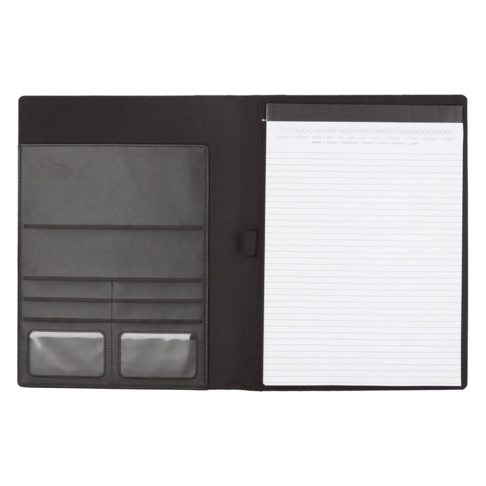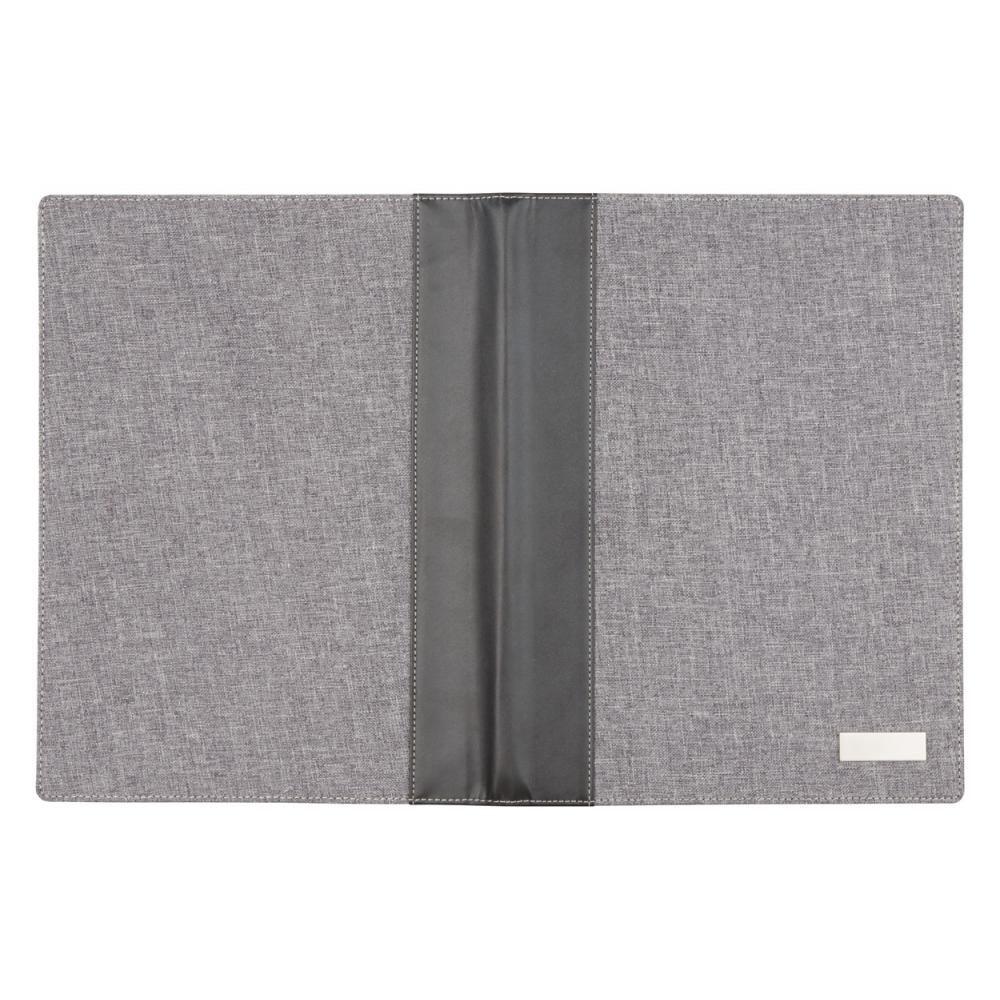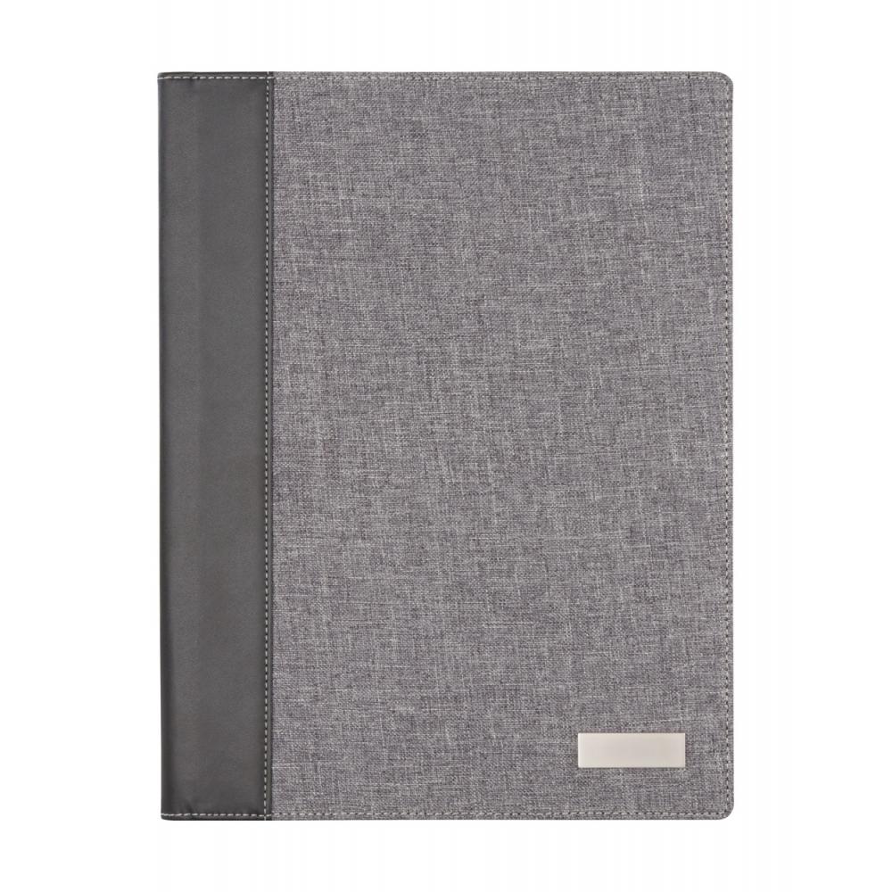 Папка для документов формата A4 с льняной и полиуретановой оболочкой, блокнот на 20 листов в подкладку и металлическая пластина.