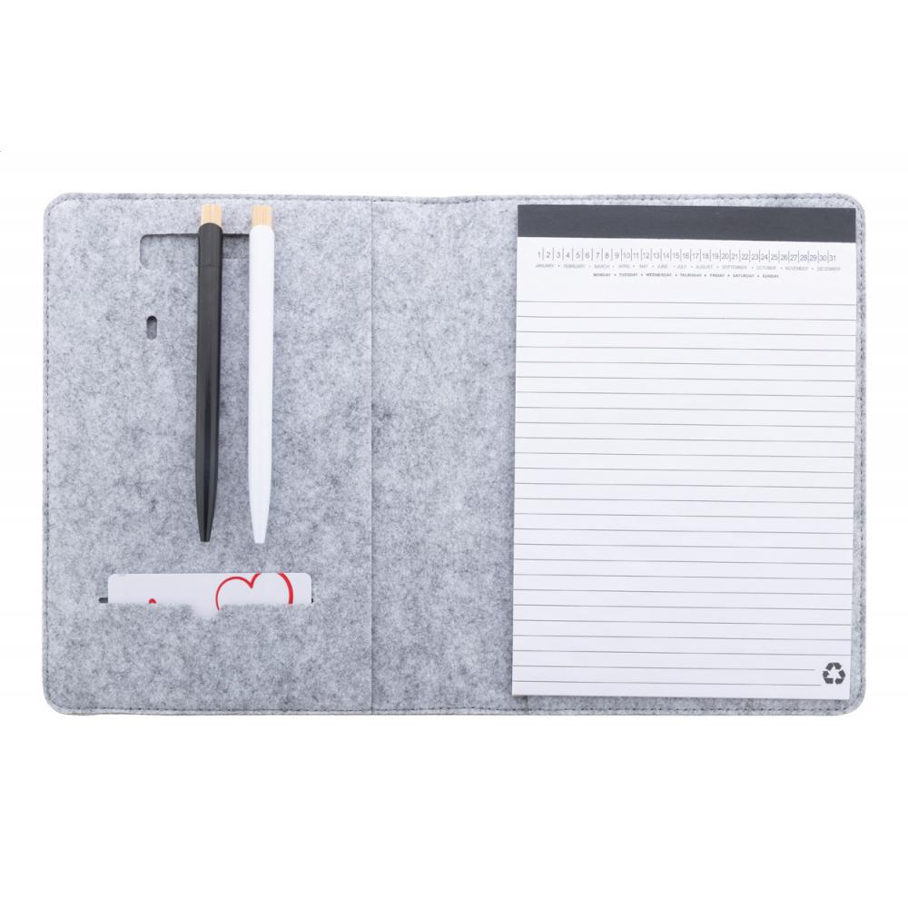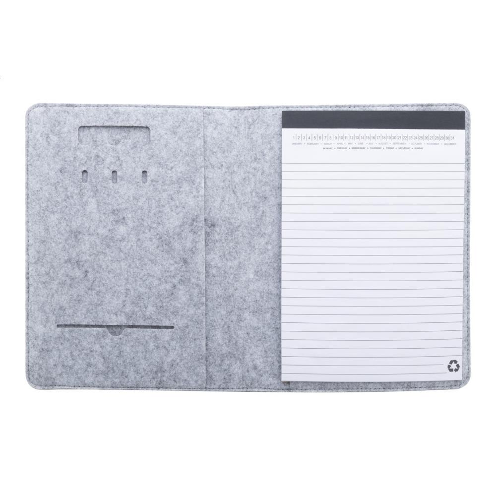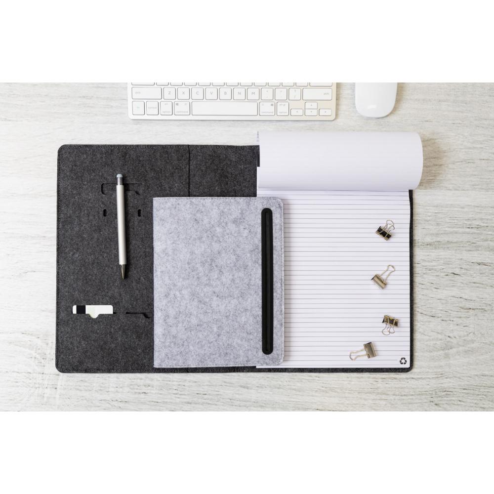 Папка для документов из фетра RPET формата A5 с карманами спереди и несколькими внутренними органайзерами. В комплекте 20 листов линейной бумаги из переработанной бумаги.