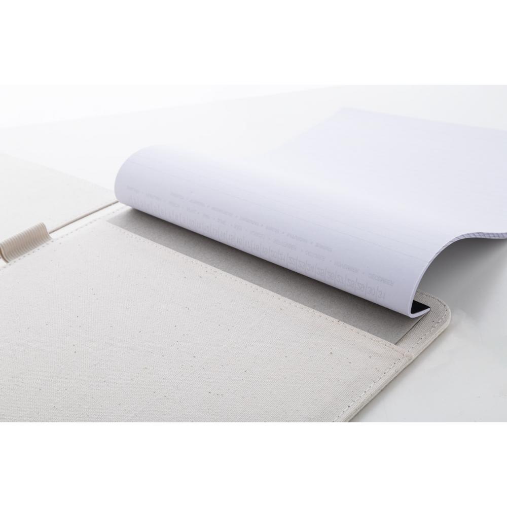 Папка для документов формата A4 из переработанного холста и переработанной искусственной кожи с несколькими внутренними карманами для организации. В комплекте блокнот на 20 листов в линейку из переработанной бумаги. Состав: 70% переработанный хлопок и 30% полиэстер RPET.