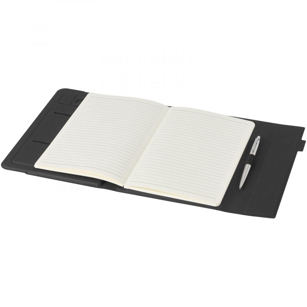 Сертифицированный RCS папка Liberto частично изготовлен из переработанного полиэстера, что делает его более устойчивым выбором, так как это помогает сократить использование первичного сырья. Включает петлю для ручки, аккордеонный карман и 64 кремовых линованных листа из переработанной бумаги плотностью 80 г/м2 из устойчивых источников. Ручка и другие аксессуары, показанные на фотографиях, не включены в комплект.