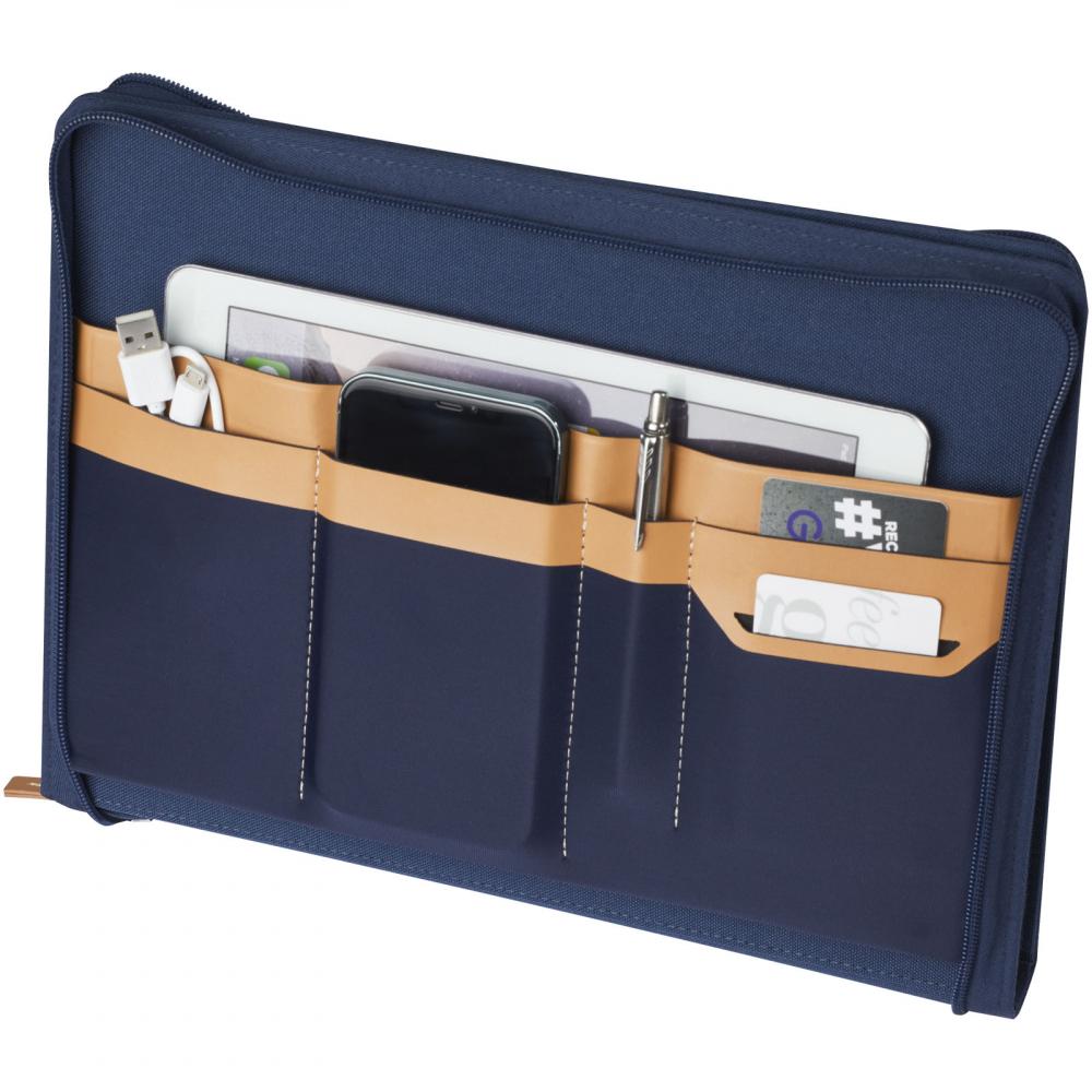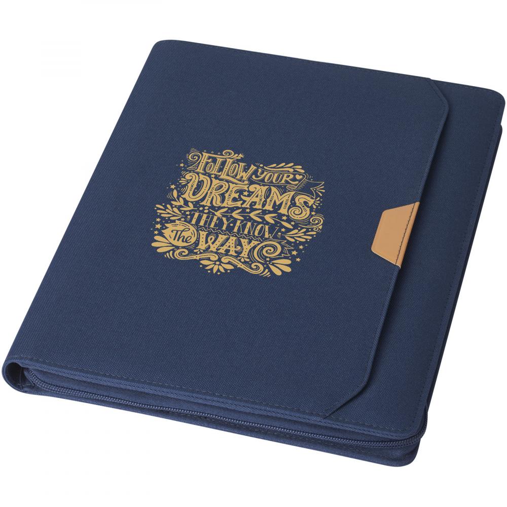 Папка Nomumi с сертификатом RCS частично изготовлено из переработанного полиэстера, что делает его более экологичным выбором, так как это помогает сократить использование первичного сырья. Портфолио оснащено застежкой-молнией, петлей для ручки, карманом-аккордеоном и 20 белыми линованными листами из переработанной бумаги плотностью 70 г/м2 из устойчивых источников. Ручка и другие аксессуары, показанные на фотографиях, не включены в комплект.