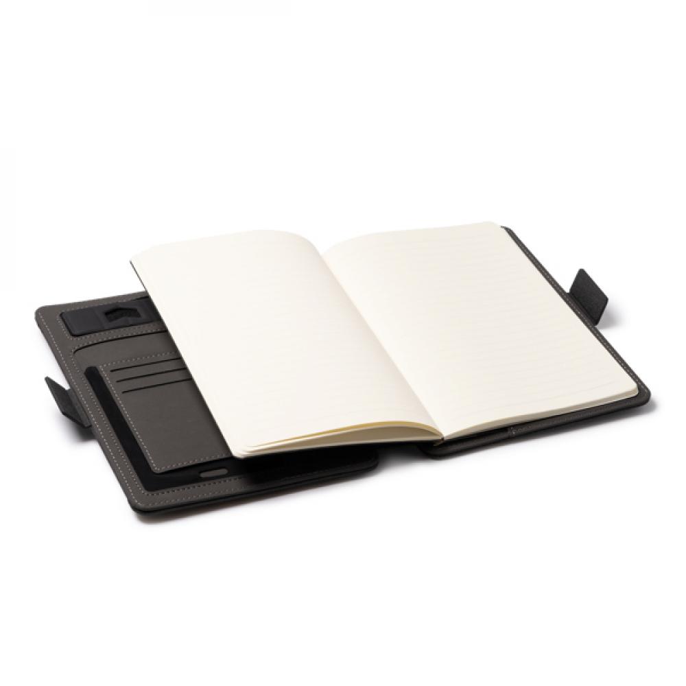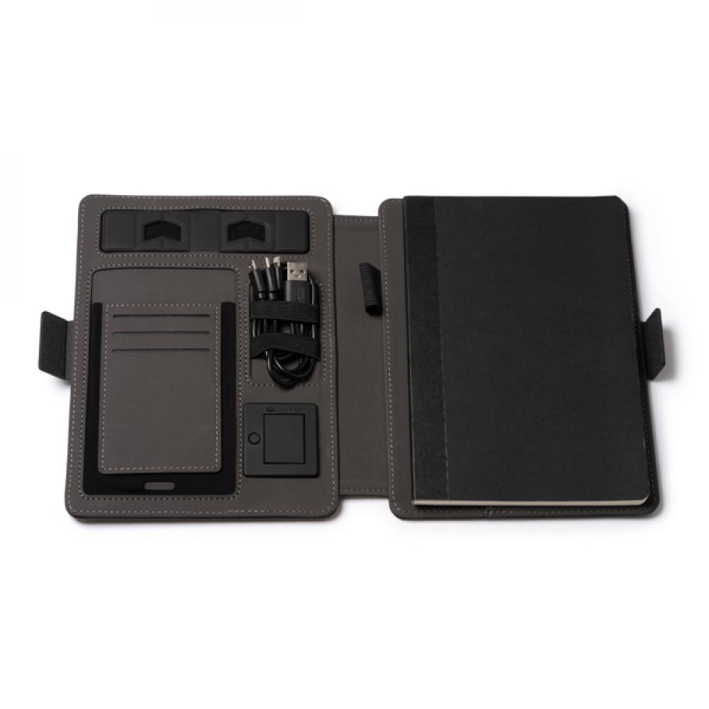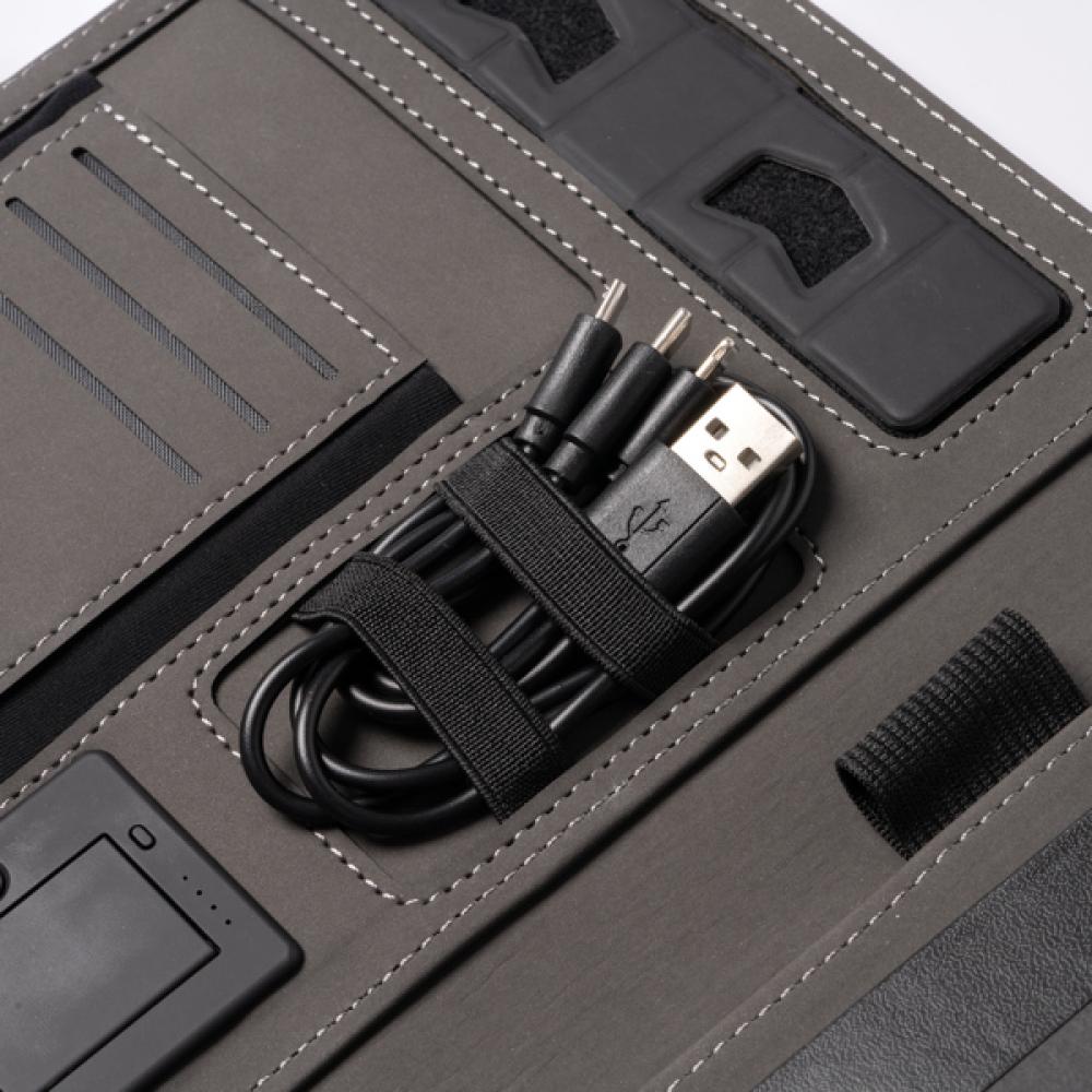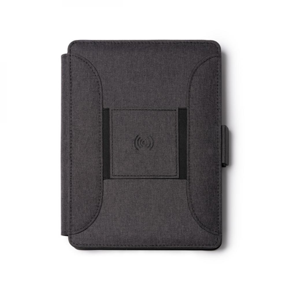 Многофункциональная папка A5 из RPET 300D - универсальный и практичный аксессуар, позволяющий организовать ваши документы. Изготовленная из RPET, высококачественного переработанного материала, эта папка демонстрирует ваше стремление заботиться о окружающей среде.Благодаря магнитному замку папка обеспечивает сохранность ваших документов и вещей внутри. Кроме того, в крышке папки встроена беспроводная зарядка, позволяющая удобно заряжать совместимые с беспроводной зарядкой устройства.Внутри папки вы найдете съемный блокнот на 56 листов и отделение для мобильного телефона, где вы можете держать его под рукой и защищенным. Также включены держатель для карт и держатель для мобильного телефона.В папке также есть удобный держатель для ручки, чтобы всегда иметь ее под рукой, когда вам это нужно. Кроме того, в комплект входит кабель с 3 входами (тип C и USB-выход), позволяющий заряжать различные устройства и обеспечивающий совместимость с различными электронными устройствами.