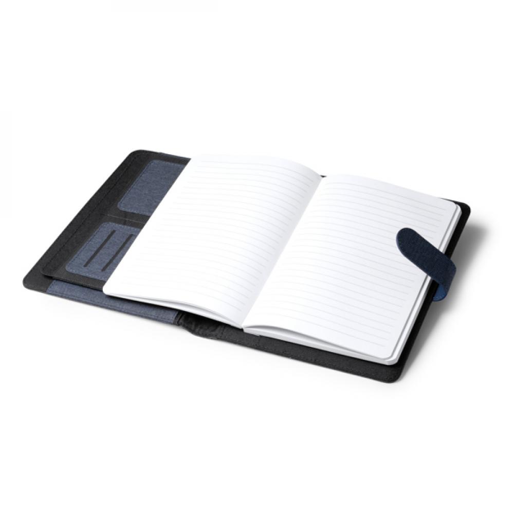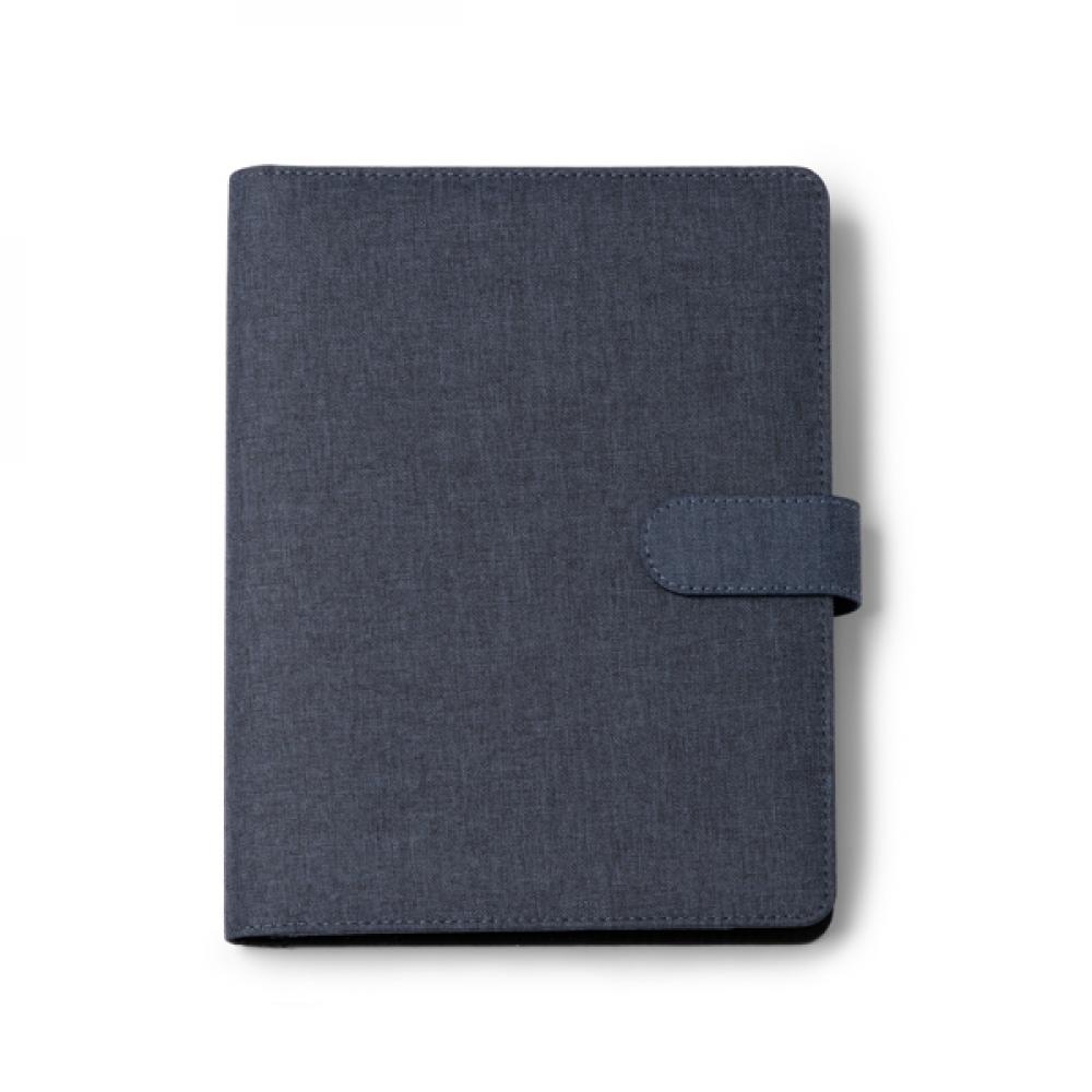 Многофункциональная папка из RPET. Размер A5 с магнитным замком. 80-листовый съемный линейный блокнот. 3 основных внутренних отделения, 2 отделения для карточек и держатель для ручки. Представление в экологической коробке дизайна.