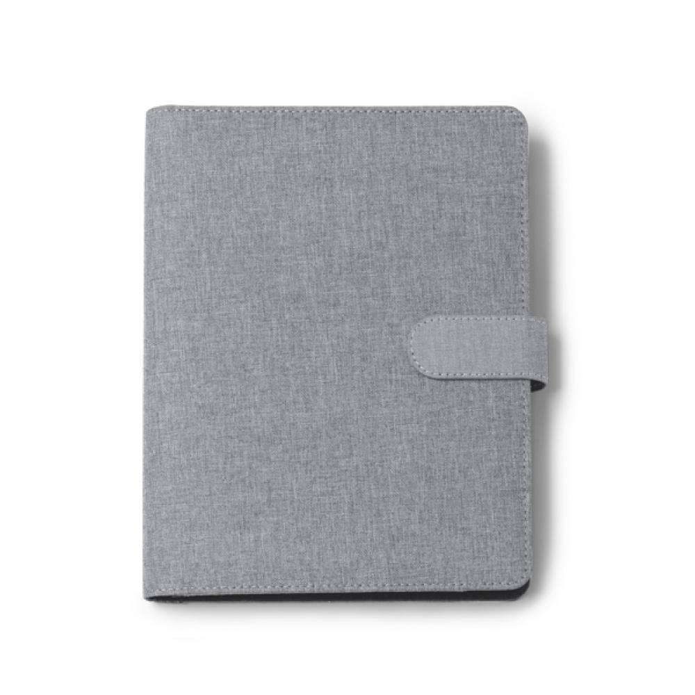 Многофункциональный папка из RPET. Размер A5 с магнитным замком. 80-листовый съемный линейный блокнот. 3 основных внутренних отделения, 2 отделения для карточек и держатель для ручки. Представление в экологической коробке дизайна.