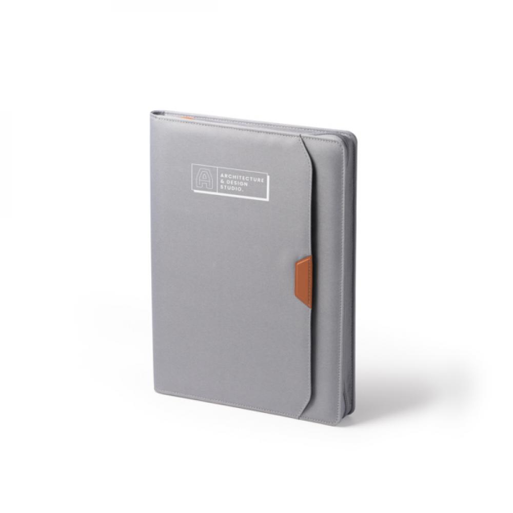 Многофункциональная папка формата A4 из 600D RPET и PU с застежкой-молнией. Внешний карман, несколько внутренних отделений и 4 отделения для карт. В комплекте держатель для ручки. 20-листовой съемный линейный блокнот.
