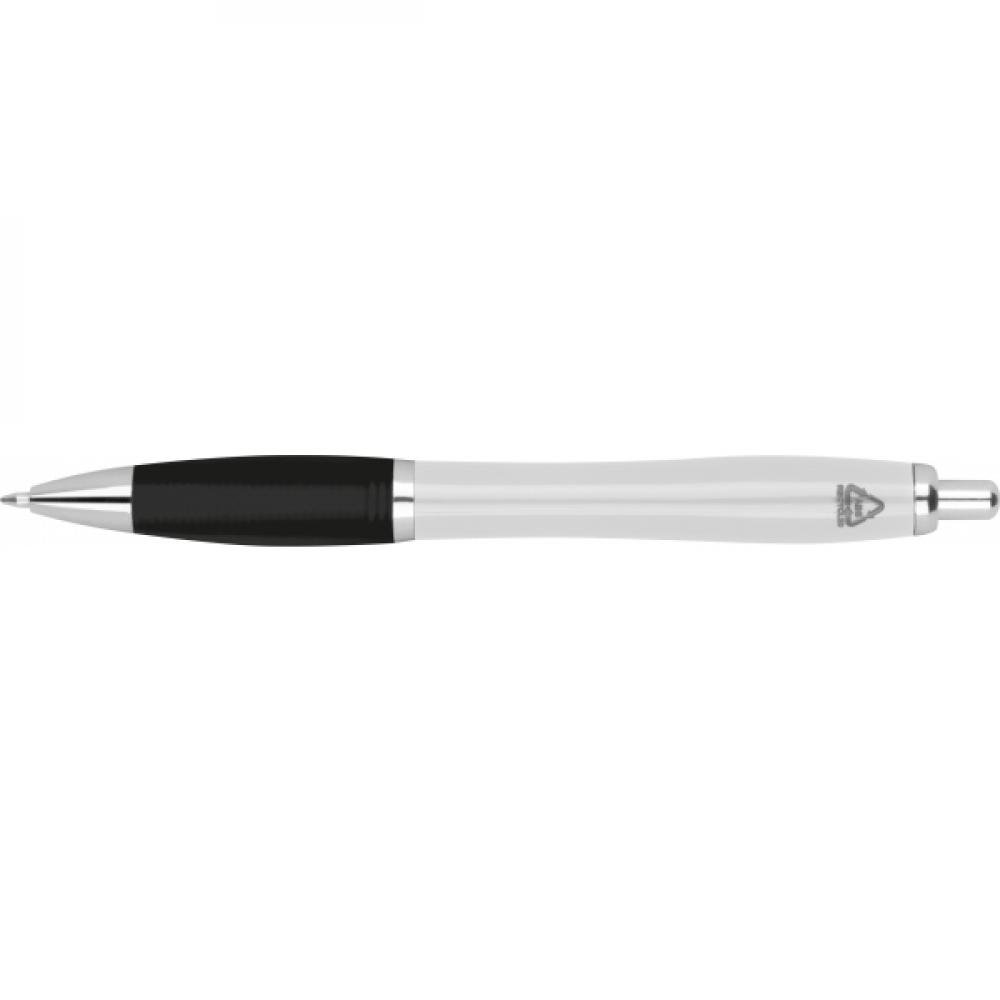 Шариковая ручка из переработанного ABS с резиновой зоной для удержания. Она оснащена большой емкостью синего пластикового стержня.
