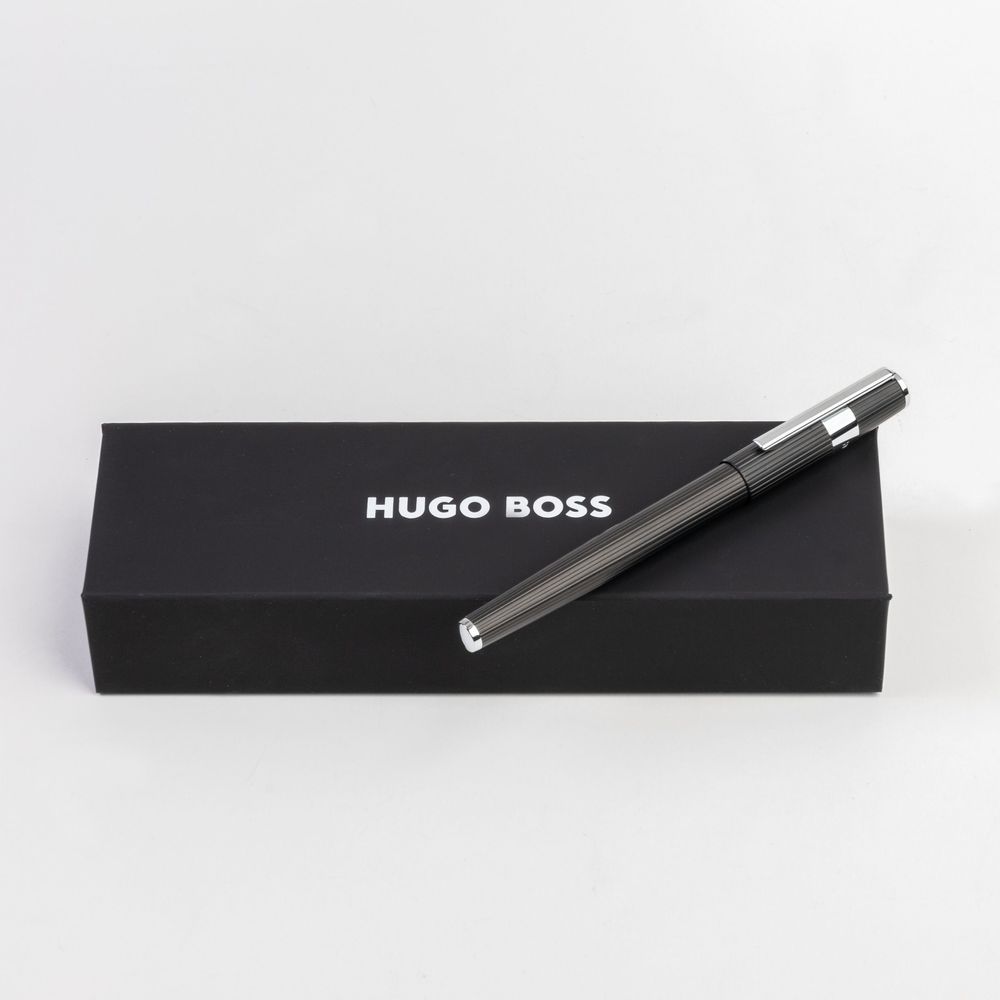 Наша культовая форма Gear снова переосмыслена, на этот раз с гравировкой, вдохновленной полосками, фирменным узором модного дома HUGO BOSS, напоминающим о его наследии в создании костюмов. Принт выполнен с использованием инновационной обработки поверхности, а контрастное, полированное кольцо с логотипом размещено на верхней части корпуса. Эта черно-хромированная версия сдержанна и элегантна.