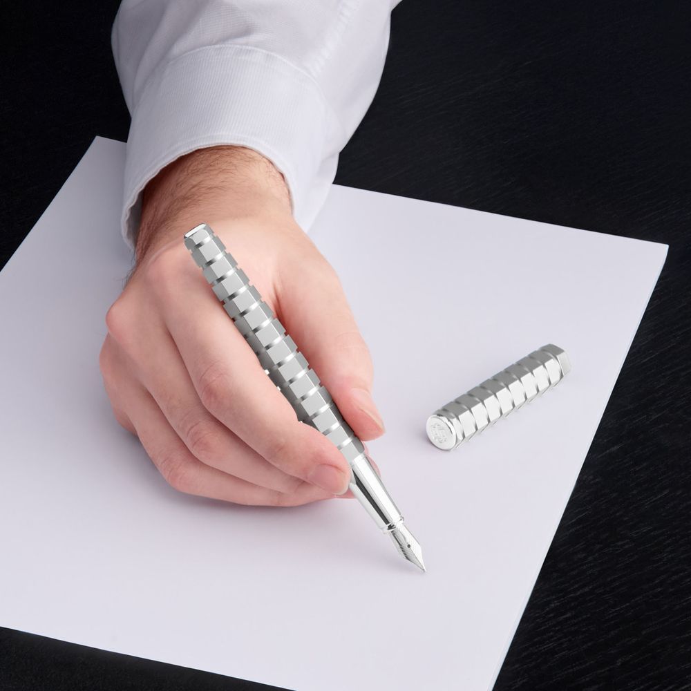 Этот эксклюзивный письменный инструмент выпущен в ограниченном количестве, и каждый экземпляр имеет свой номер. Это уникальное изделие поставляется в специальной упаковке ограниченной серии, а гарантийная карта защищена в роскошном кожаном держателе. Основанная на выразительной шестиугольной форме, угловатость этой ручки подчеркивается рядом скульптурных прямоугольных полос. Размывая границы между скульптурой и архитектурой, этот исключительный письменный инструмент полностью покрыт минималистичным матовым хромом, что позволяет уникальному дизайну быть в центре внимания.