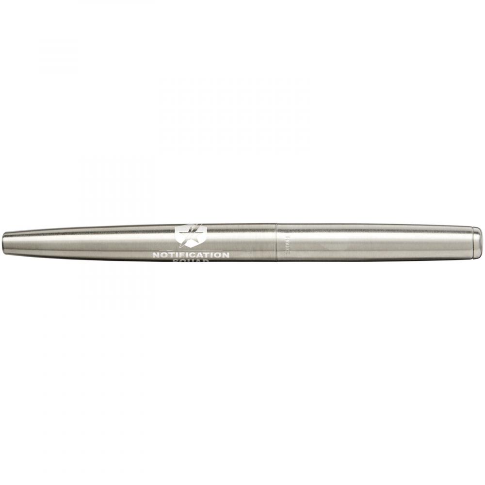 Перьевая ручка Jotter — это современная интерпретация оригинального символа. Имеет корпус из нержавеющей стали с хромированной отделкой. Упакована в подарочную коробку Parker. Размер пера: тонкое (0,5 мм).