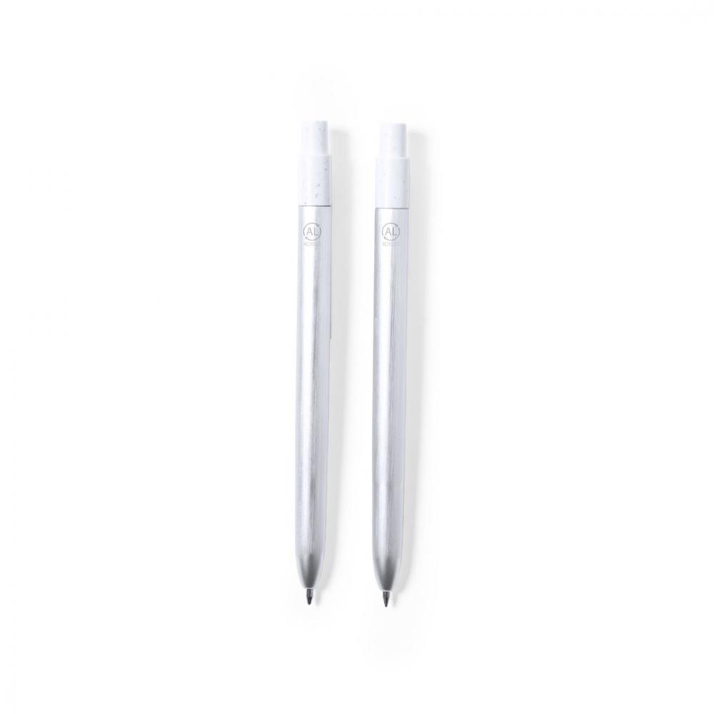 Особенности Экологически чистый набор шариковой ручки и роллера, изготовленный из переработанного алюминия и с деталями из переработанного ABS (RABS). В комплекте: Шариковая ручка из переработанного алюминия с кнопочным механизмом, серебристым корпусом и белой фурнитурой. С логотипом из переработанного алюминия на верхней части шариковой ручки, большим картриджем и синими чернилами.Ручка-роллер из переработанного алюминия с кнопочным механизмом, серебристым корпусом и белой фурнитурой. С логотипом из переработанного алюминия на верхней части шариковой ручки, большим картриджем и синими чернилами.Набор представлен в индивидуальном дизайнерском футляре из крафт-бумаги с соответствующим рукавом.Переработанный алюминий берет свое начало в почти бесконечном повторном использовании одного из материалов с наибольшим потенциалом вторичной переработки, сохраняя качество получаемого продукта. Эта особенность превращает его в экологически чистый материал вторичного происхождения, легко поддающийся вторичной переработке. Кроме того, новые материалы и ресурсы могут быть получены в результате процессов обработки и удаления отходов, потребляя меньше энергии среди других устойчивых факторов.Сертификат GRS (Global Recycled Standard), который гарантирует переработанное происхождение материала, используемого для изготовления продукта. Ручка и валик. Гигантская заправка Переработанный алюминий/ RABS