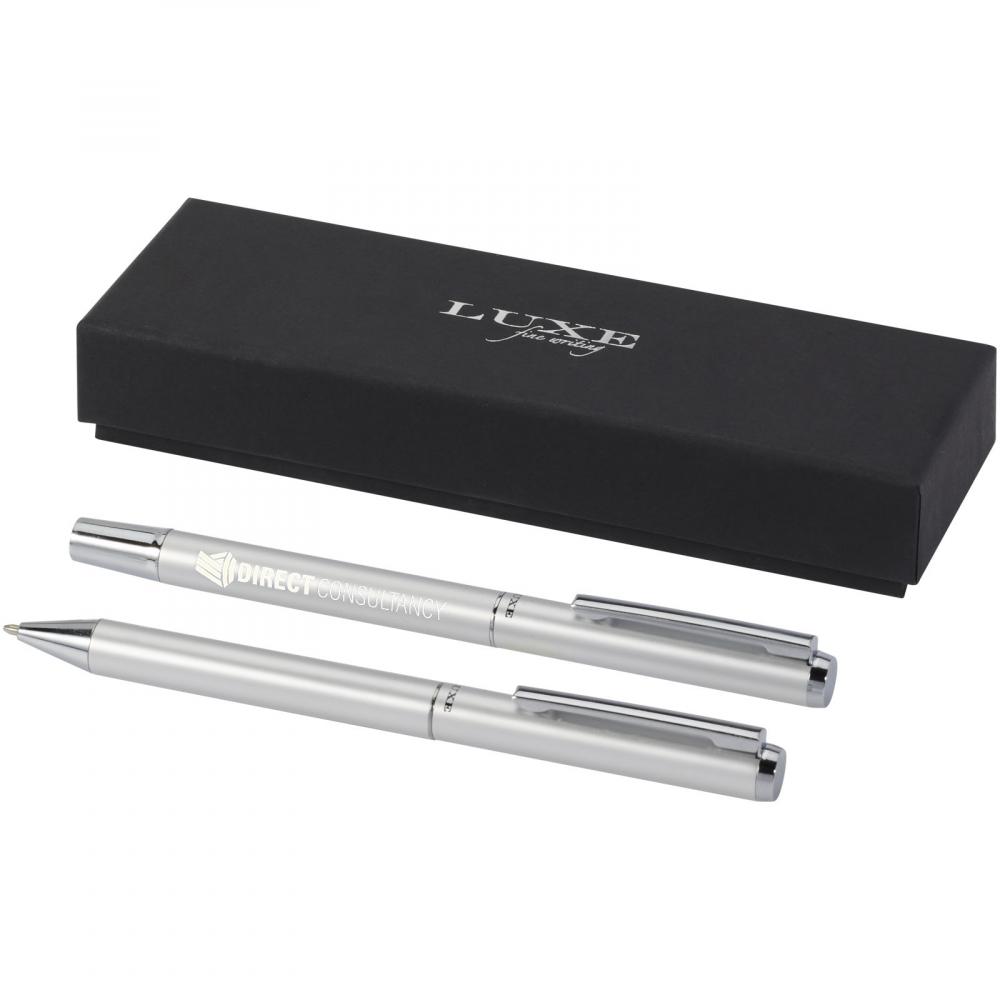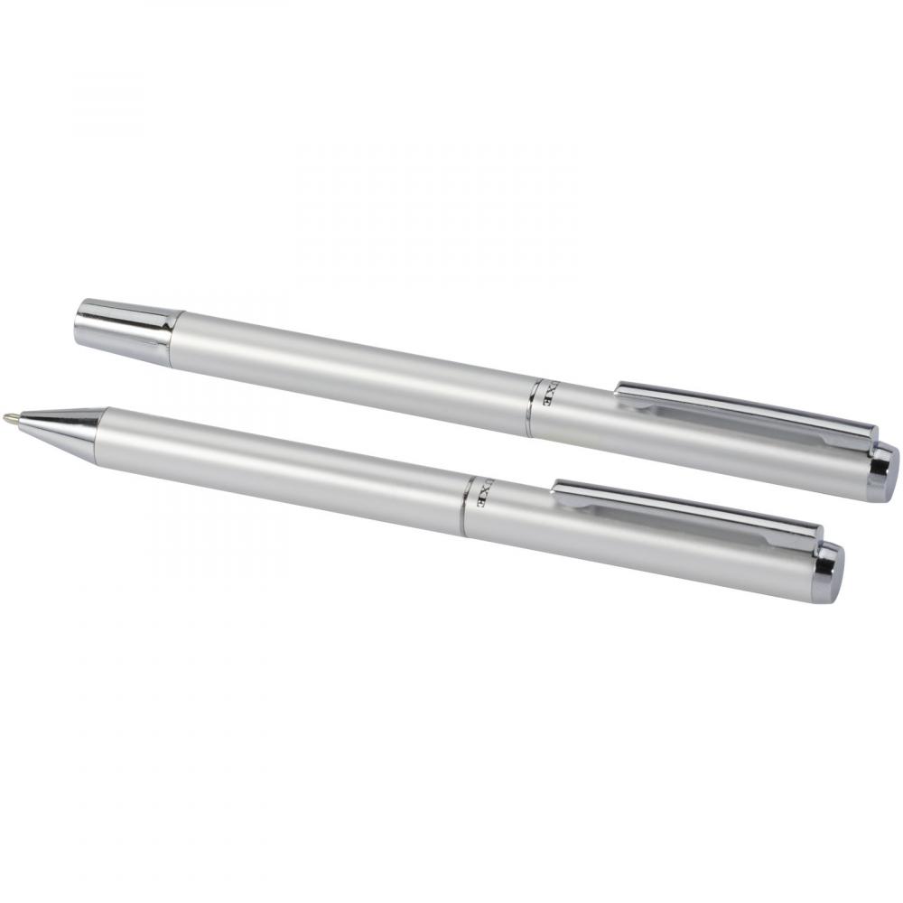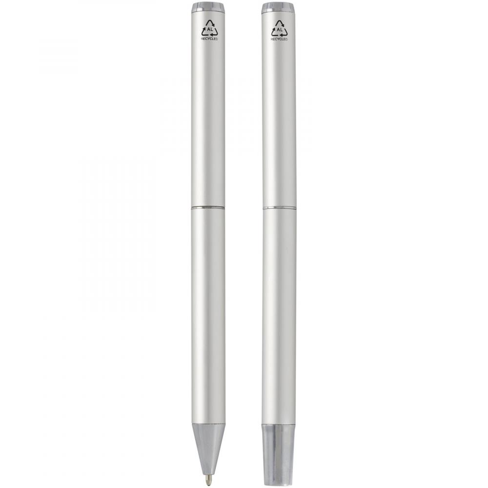 Корпуса ручек в этом наборе шариковой и роллерной ручек изготовлены из матового анодированного переработанного алюминия с блестящими хромированными аксессуарами. Алюминий является высоко перерабатываемым материалом, и, выбирая этот набор ручек, вы можете поддержать более устойчивые практики и дать новую жизнь выброшенным алюминиевым материалам. Эти ручки служат практичным и более экологичным вариантом для людей и организаций, ищущих экологически чистые письменные инструменты. Цвет чернил ручек: черный. Размер пера: 1,0 мм. Длина письма: 800 метров. Поставляется в черной подарочной коробке с черной шелковой лентой. Размер коробки: 16,2 x 5,1 x 2,7 см.