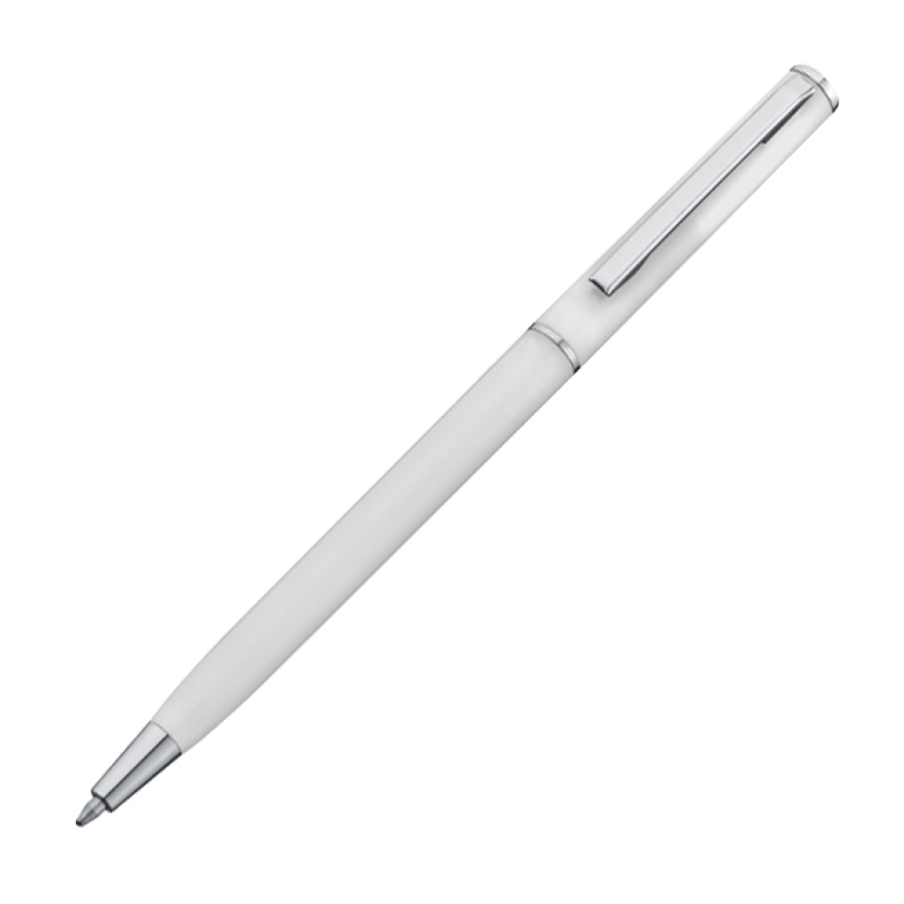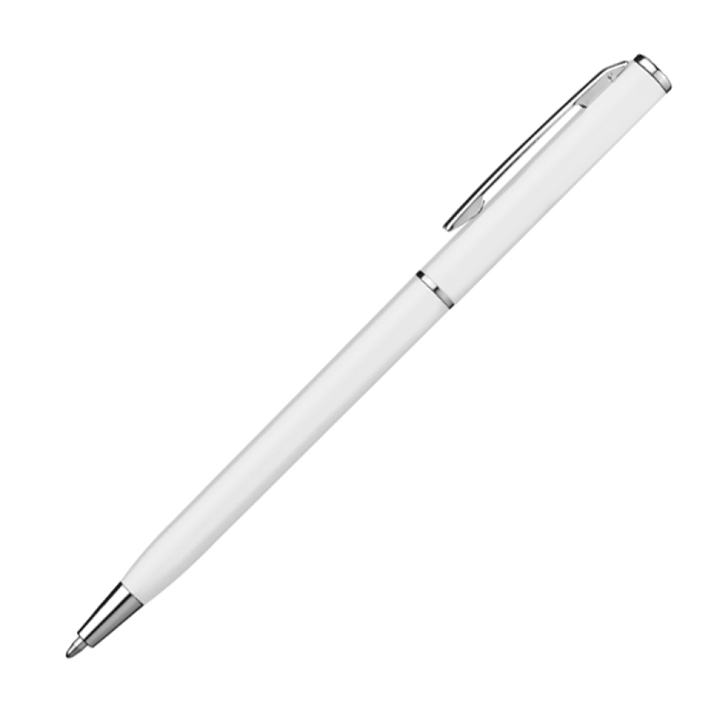 Тонкая, пластиковая ручка с поворотным механизмом и синим стержнём.