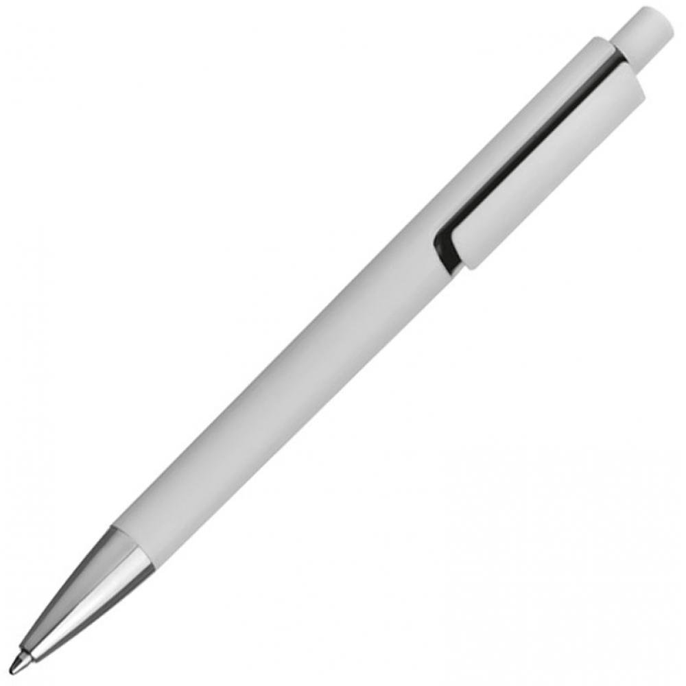 Пластиковая ручка с с синим стержнем и цветным элементом под клипом.