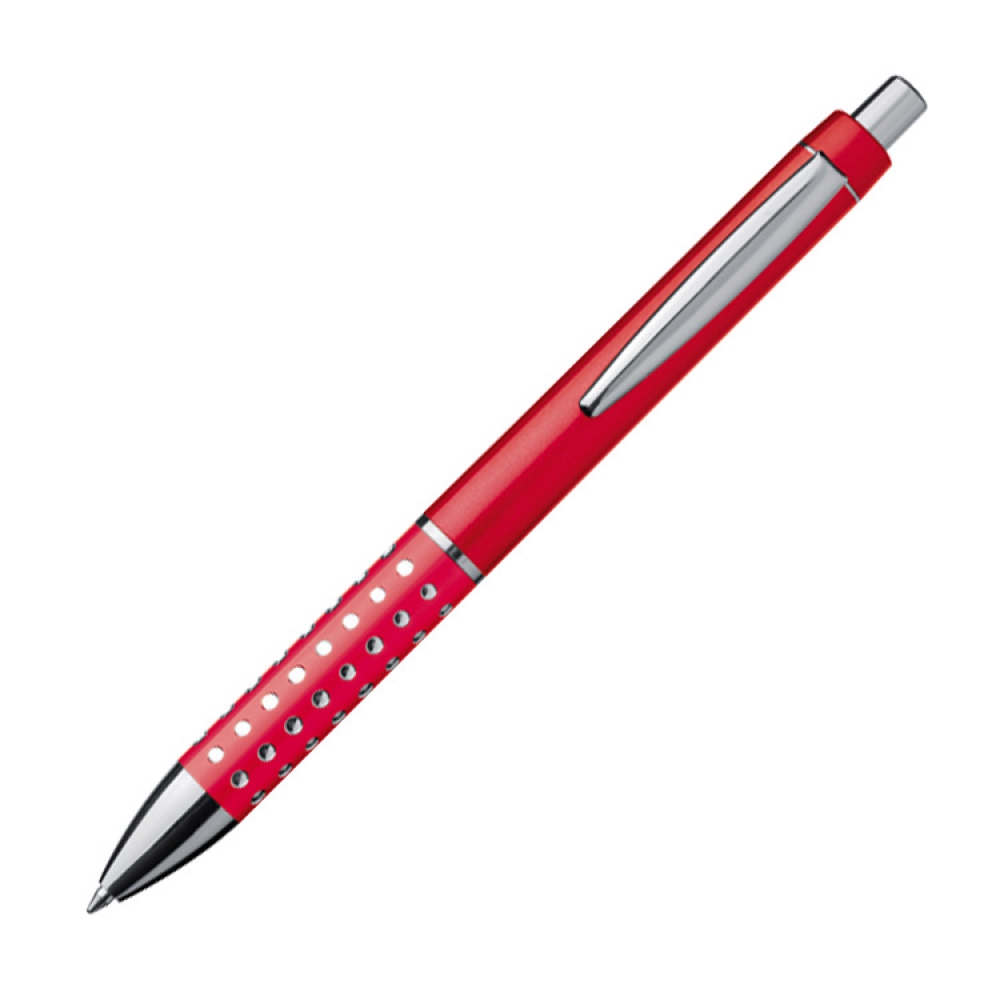 Пластиковая ручка о уникальном дизайне. Имеет металлический клип и большой синий стержень.