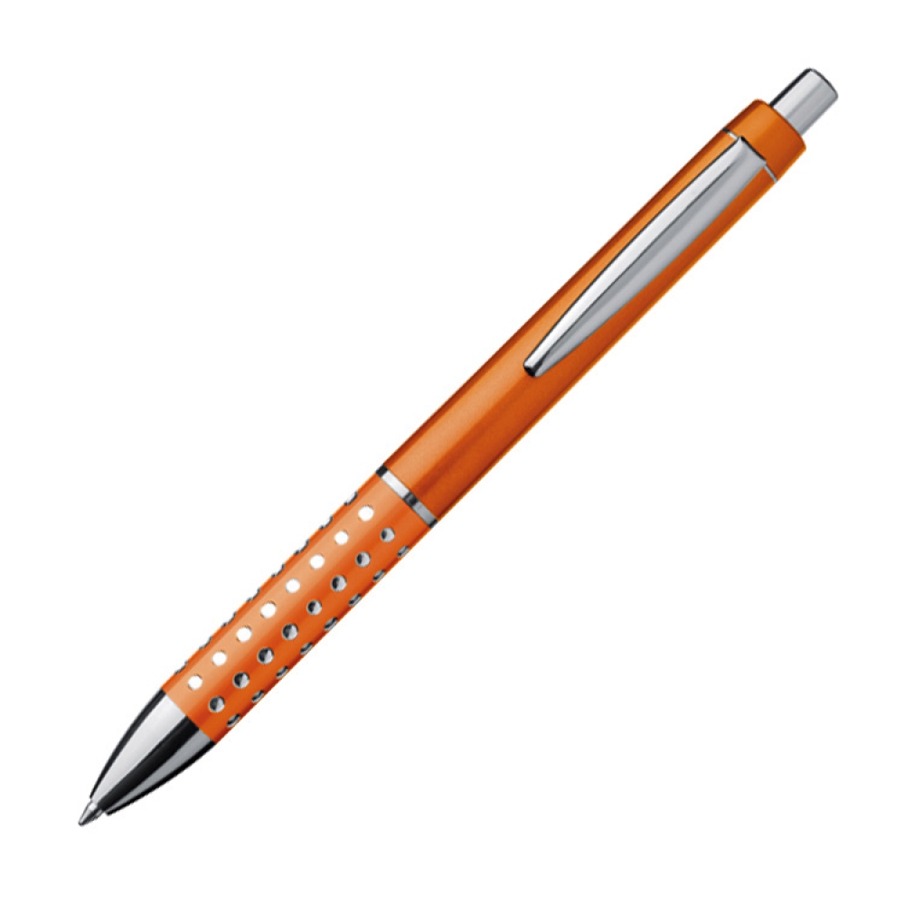 Пластиковая ручка о уникальном дизайне. Имеет металлический клип и большой синий стержень.