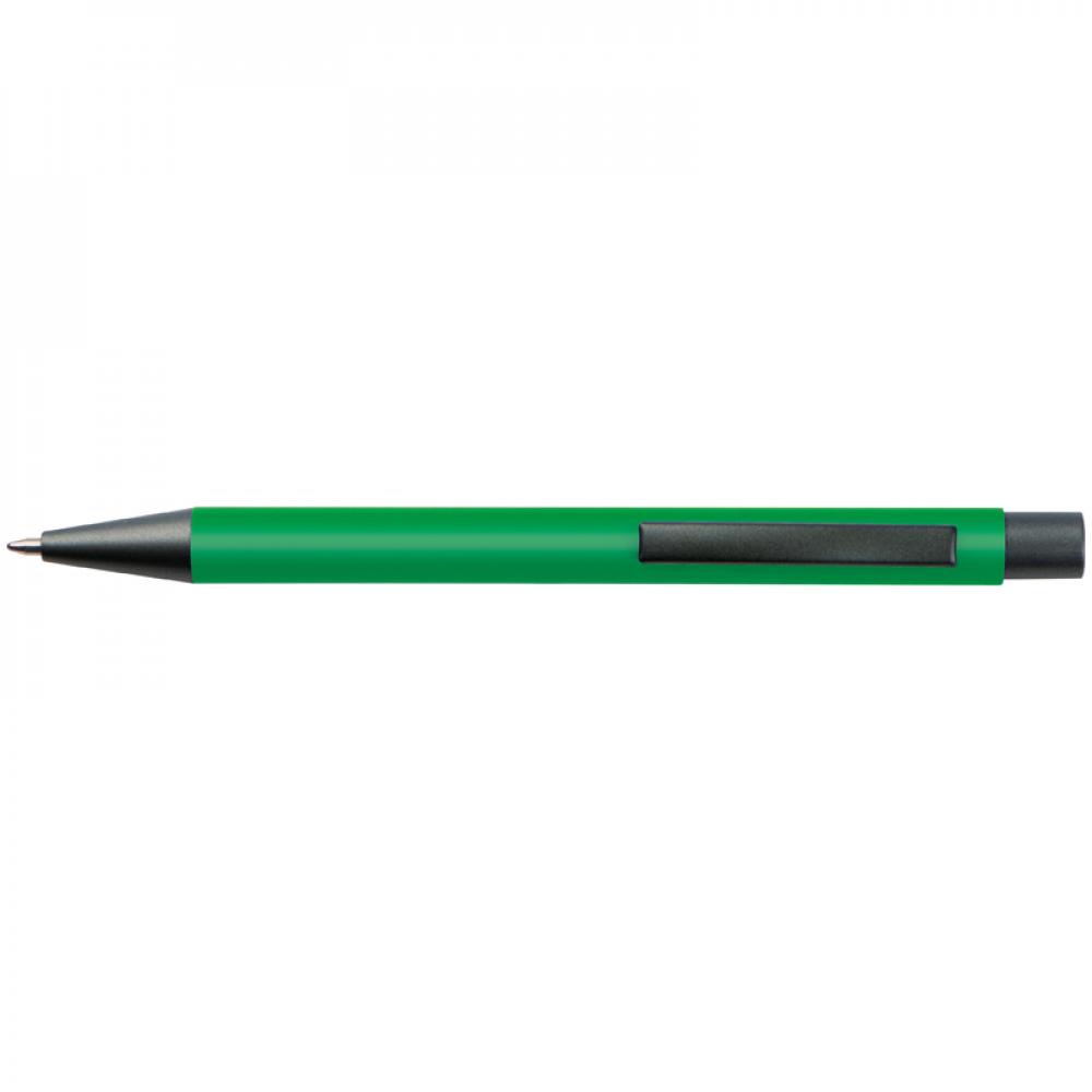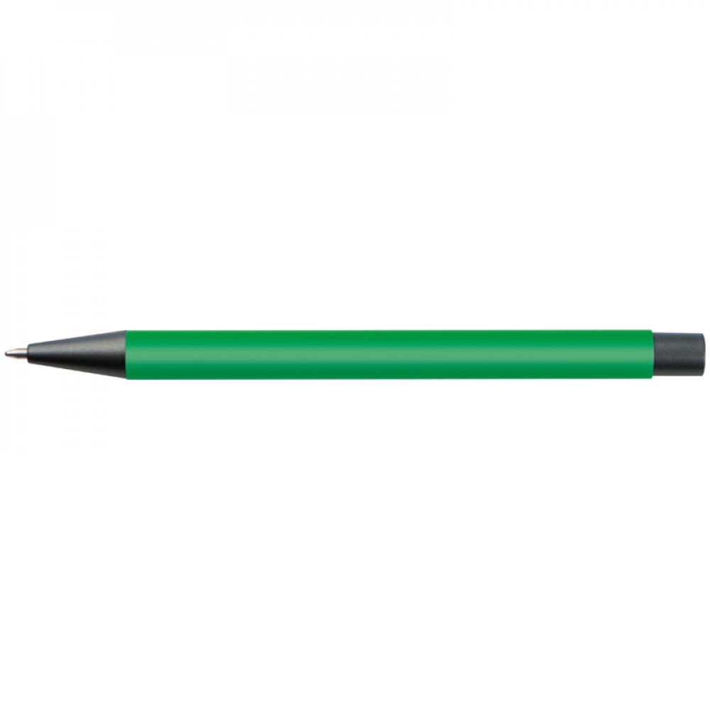 Пластиковая ручка с синими чернилами, цветным корпусом и металлическим клипом.