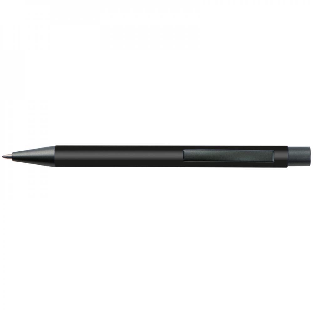 Пластиковая ручка с синими чернилами, цветным корпусом и металлическим клипом.