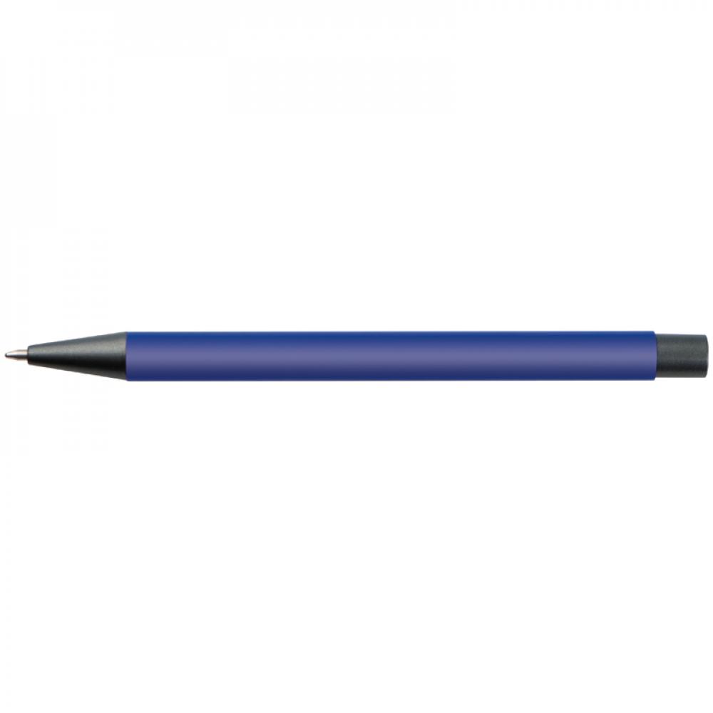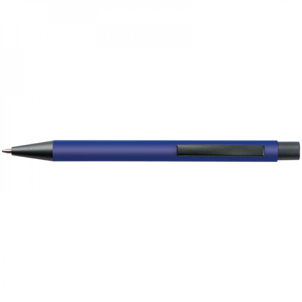 Пластиковая ручка с синими чернилами, цветным корпусом и металлическим клипом.