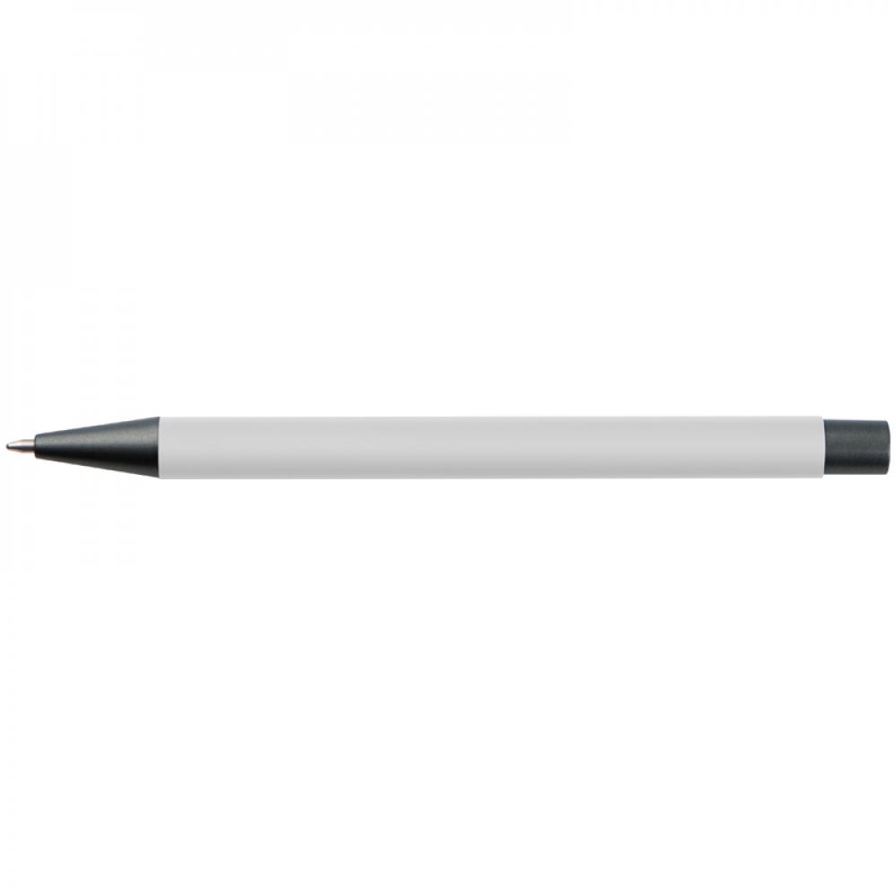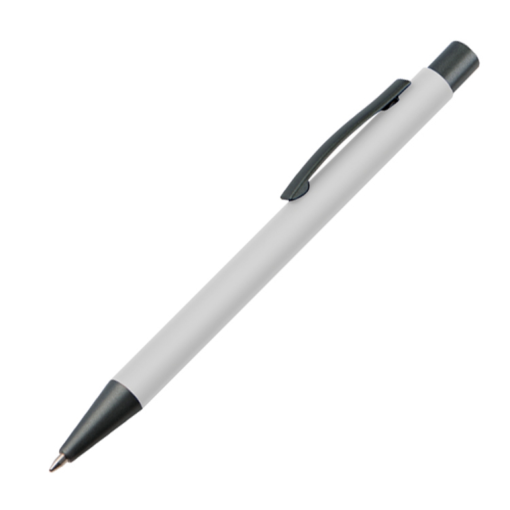 Пластиковая ручка с синими чернилами, цветным корпусом и металлическим клипом.