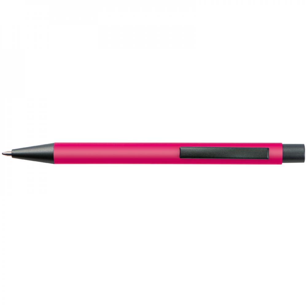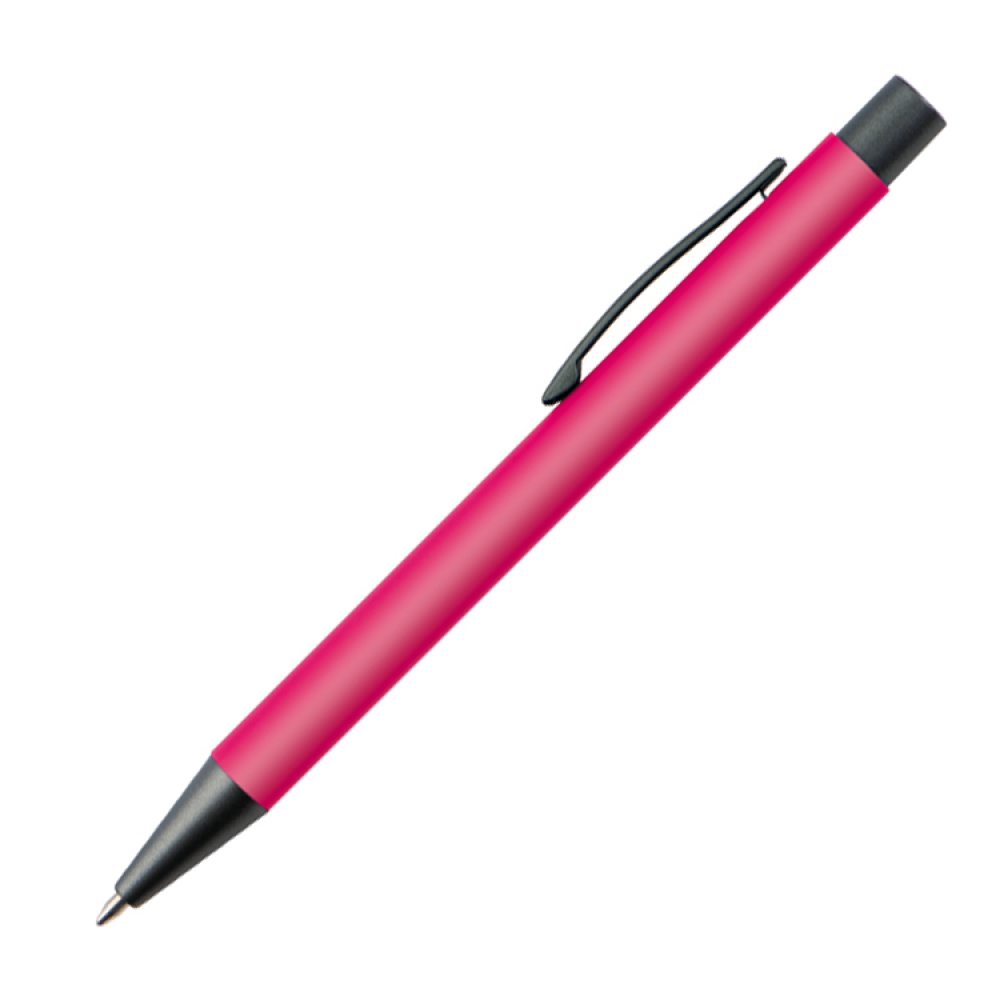 Пластиковая ручка с синими чернилами, цветным корпусом и металлическим клипом.