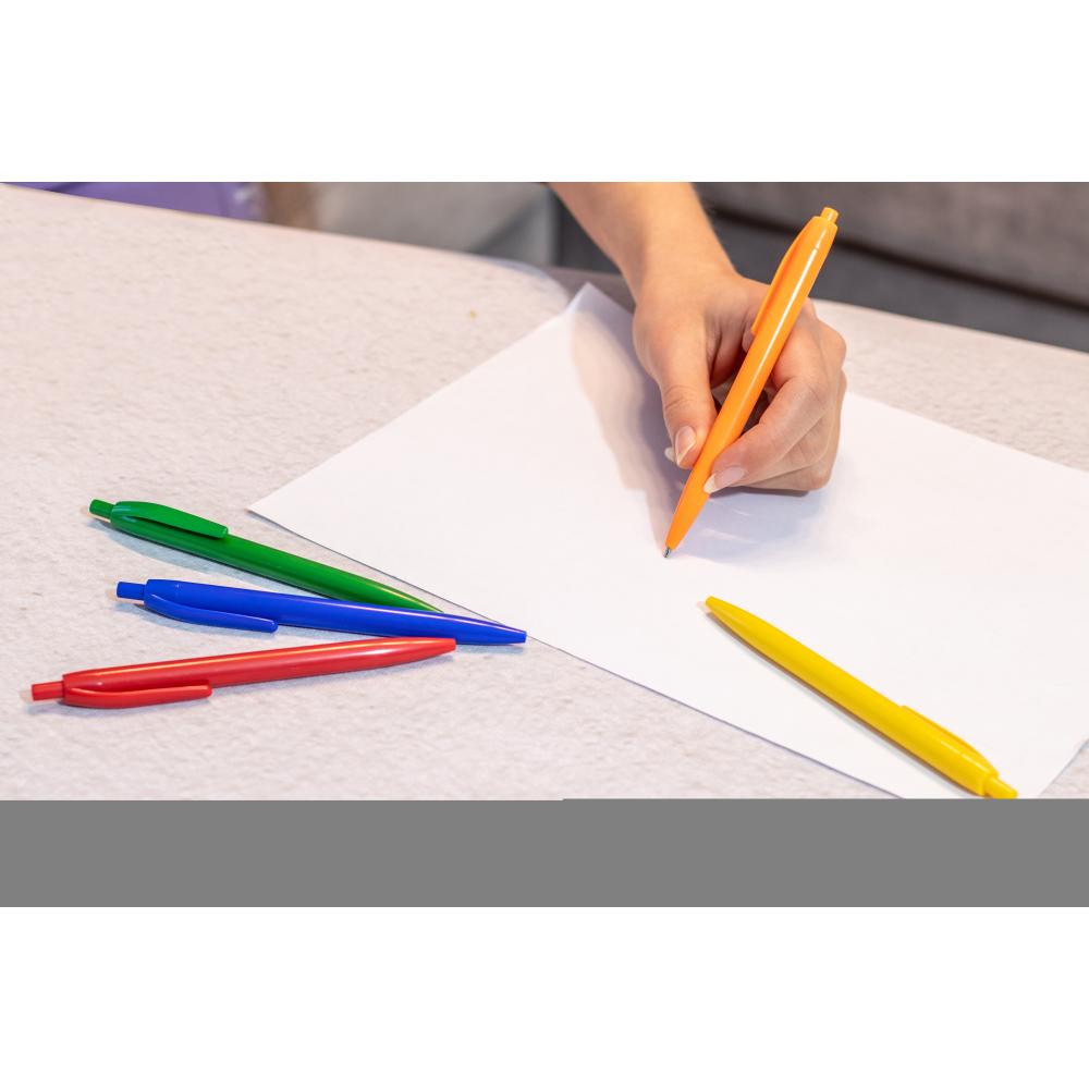 Модная шариковая ручка с кнопочным механизмом и синим стержнем.