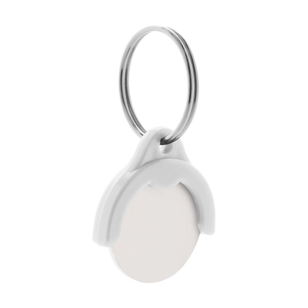 Пластиковый брелок для ключей с цветной печатной монетой на тележке для покупок. Цена включает УФ-печать на одной стороне монеты. MOQ: 500 шт.