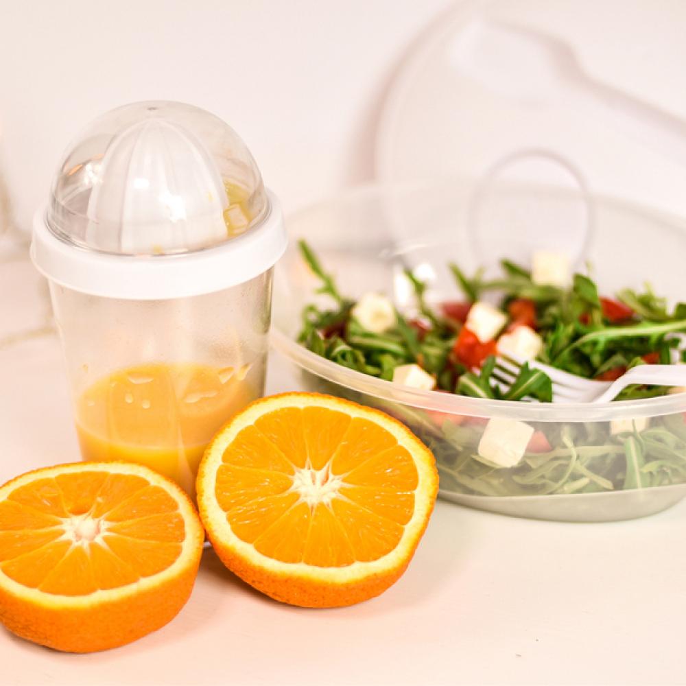 Пластиковый стакан 350 мл с соковыжималкой. Без хлопот вы приготовите свой любимый фруктовый сок.