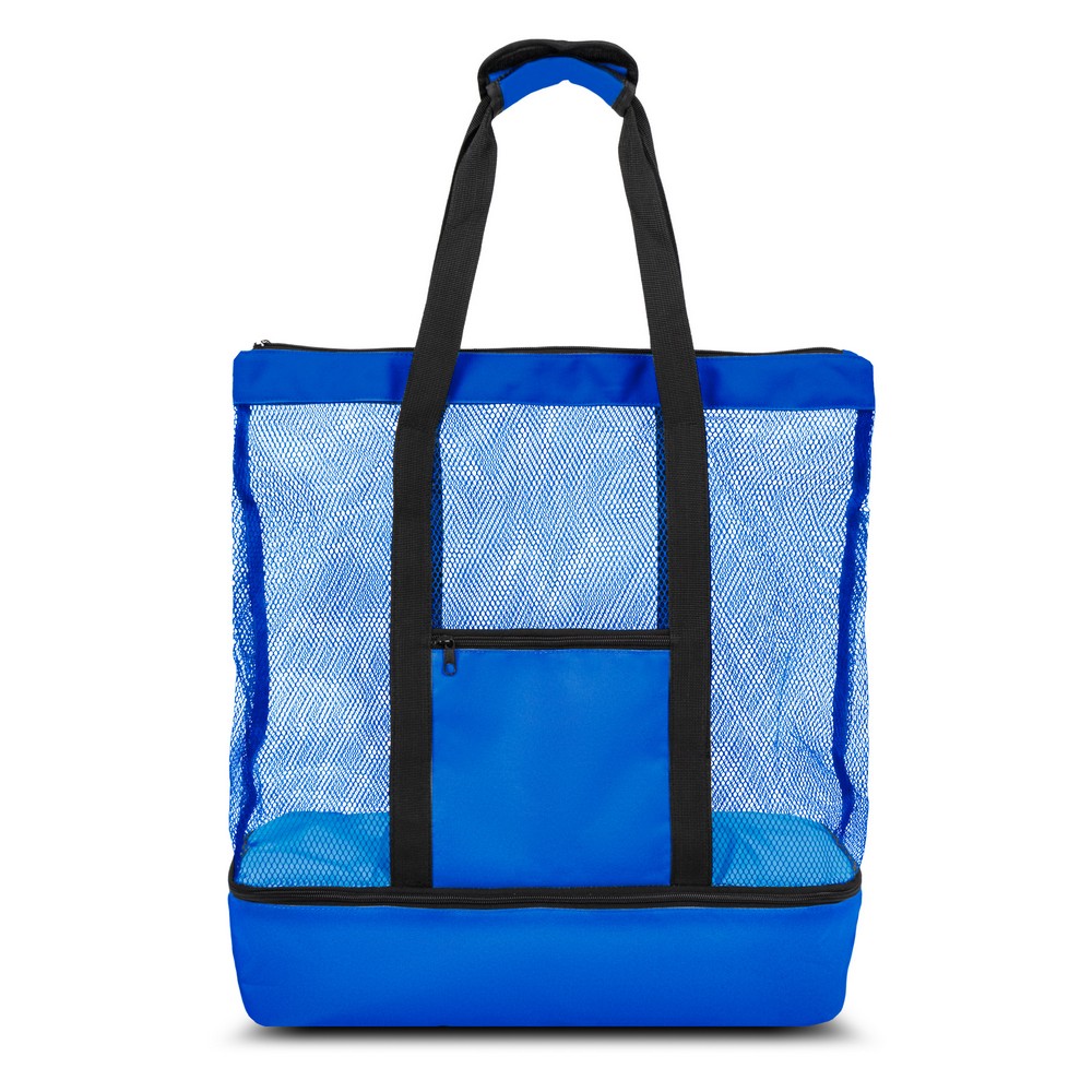 Пляжная сумка для покупок, изготовленная из полиэстера RPET, соответствует сертификату GRS (Global RecycIed Standard), с нижним отделением для охлаждения на молнии, передним карманом и сетчатым основным отделением на молнии
