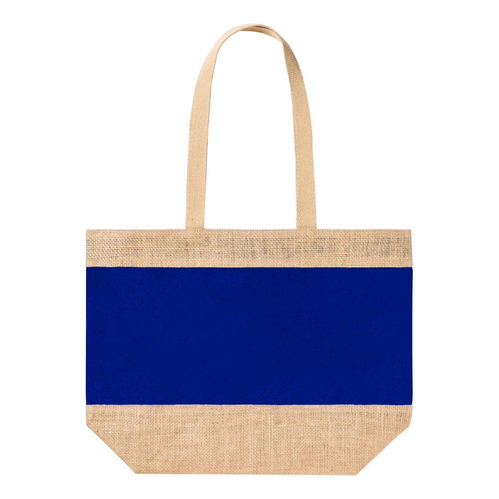 Цветная пляжная сумка из комбинации ламинированного джута и ламинированного хлопка с длинными ручками.