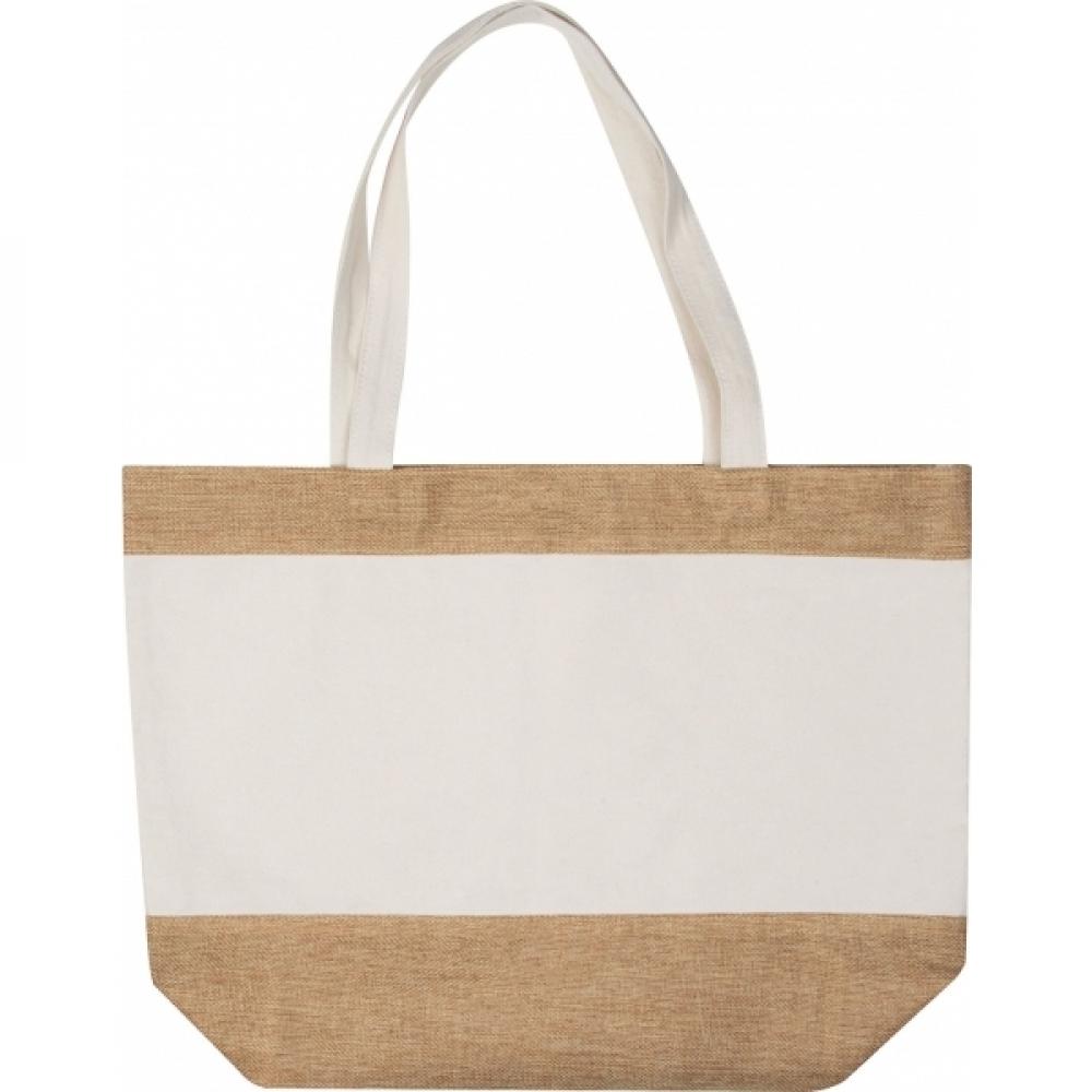 Вместительная сумка с длинными ручками из хлопка и джута.