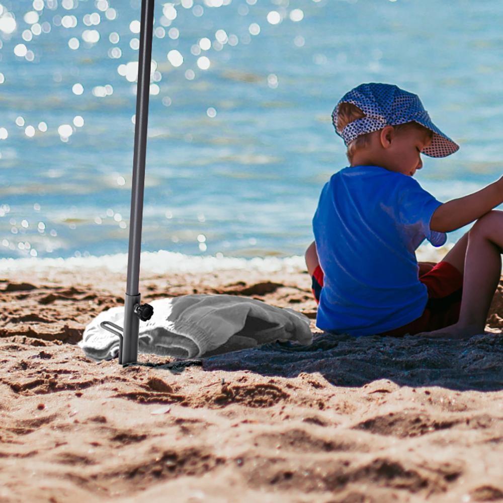 Простое управление с безопасным бегунком, очень прочные стеклопластиковые спицы, двухсекционная и плавно регулируемая по высоте штанга с механизмом наклона для изменения угла зонта, штанга с элегантным титановым покрытием, нижняя часть штанги длиной примерно 120 см с поворотным замком для надежной фиксации, удобный чехол для переноски, высококачественный чехол с плотностью около 200 г/м² и солнцезащитным фактором UPF 50+, без учета основания для зонта (арт. 8920 или арт. 8905) / наземного штыря (арт. 8939).